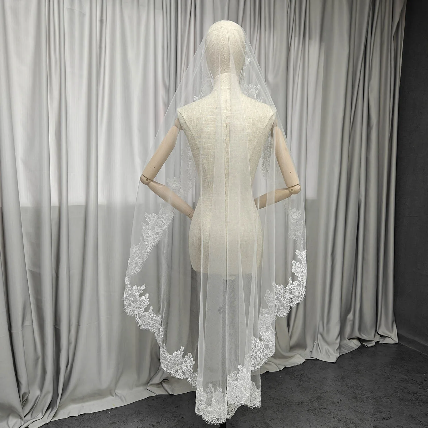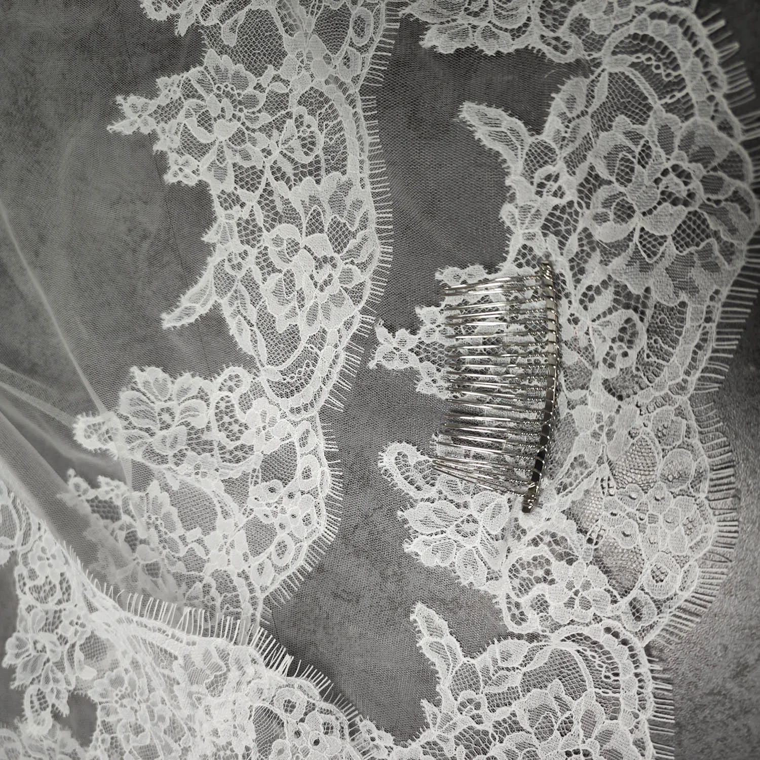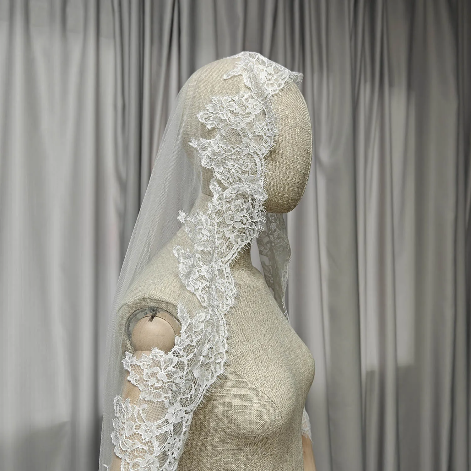 Customized Short Mantilla Wedding Veil with Eyelash Lace, 1m/1.5m/2m Short/Medium Length Veil with Hidden Comb, Single Tier Veil