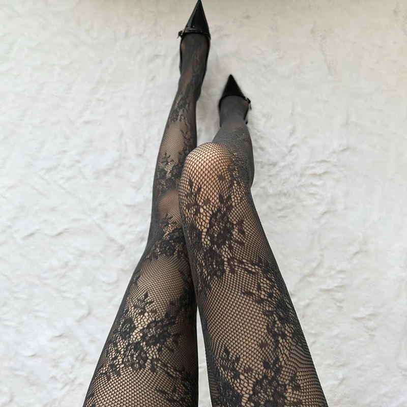 Cute Lolita Tights Women Lace Floral Thigh High Stockings Pantyhose Lingerie Hosiery Mesh Fishnet Stockings Women Tights
