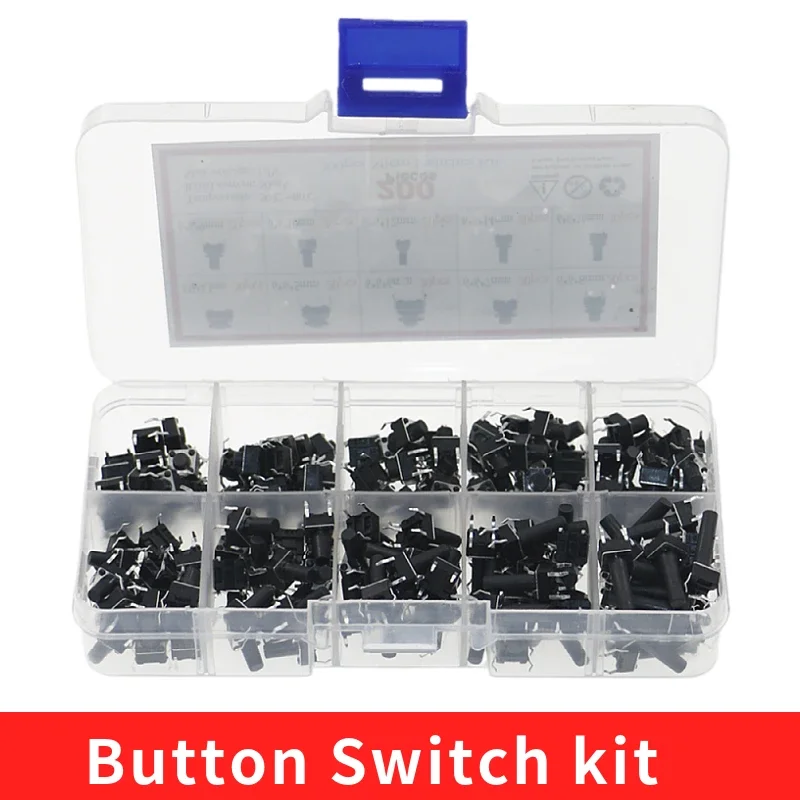 200pcs 10values button switch Assorted kit 6*6 * h 4.3/5/6//8/9/10/12/14/16mm keys switch set