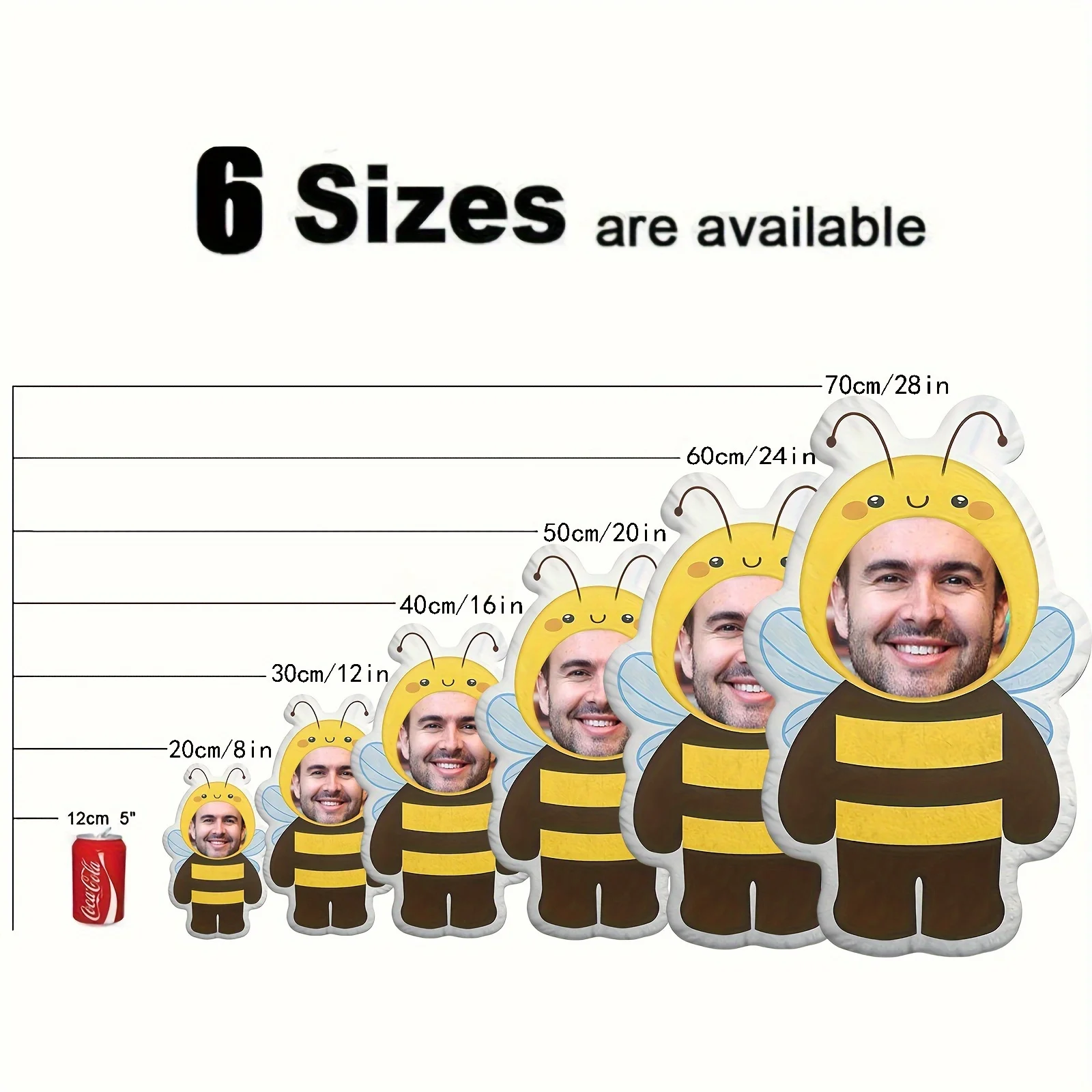 A customizable bee shaped photo printed pillow with double-sided design, machine washable, filled with polypropylene cotton