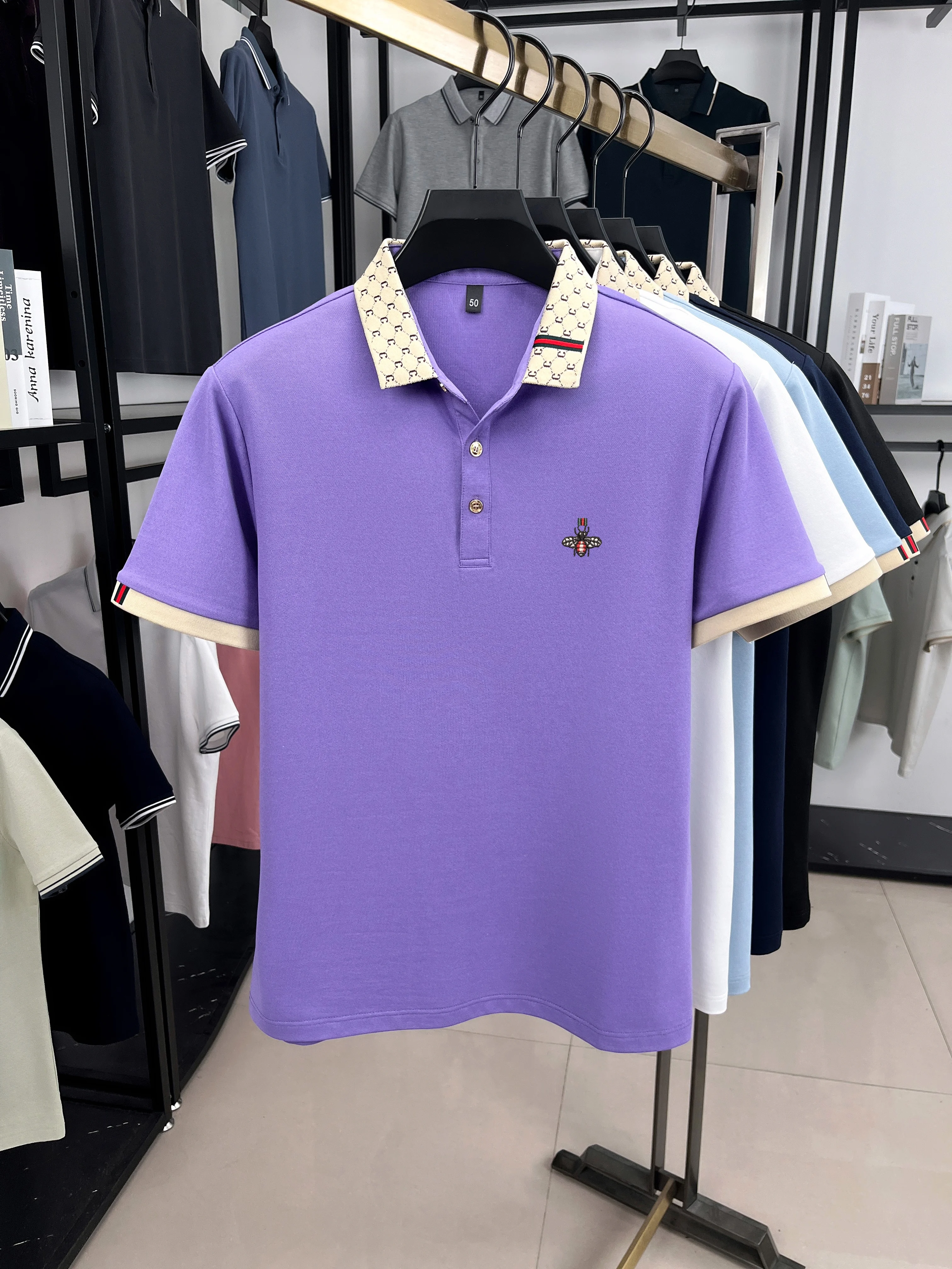 Personality letter jacquard lapel short sleeve T-shirt men high-end brand Little Bee embroidery fashion trend summer polo shirt