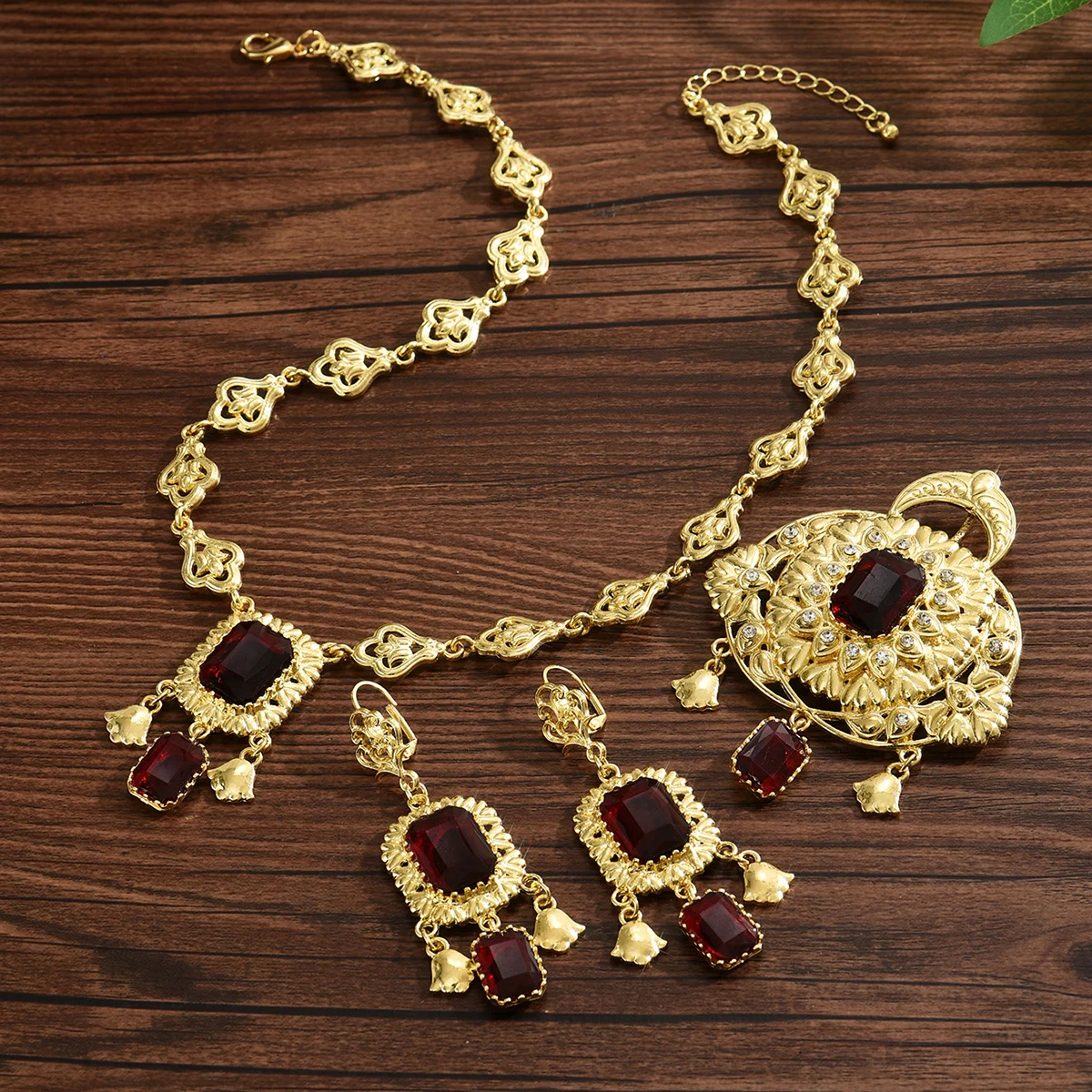 aliexpress , ali , shop , ali shop , online , store , online shop , online store , buy , sell , Elegant Moroccan Bride Necklace Head Chain General Earrings Brooch Jewelry Set Square Design Arabic Wedding Robe Accessory Gift