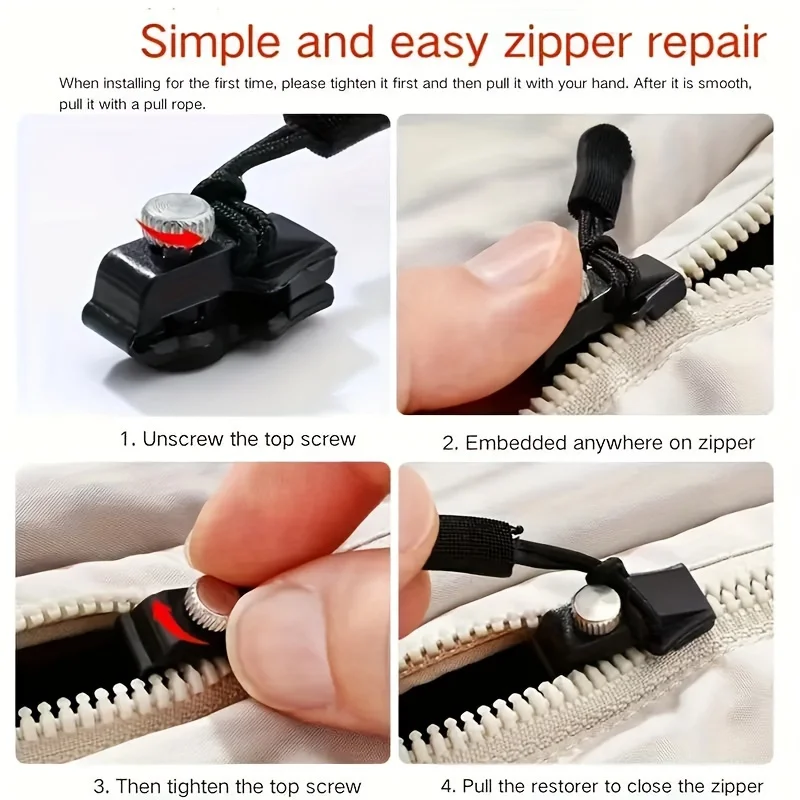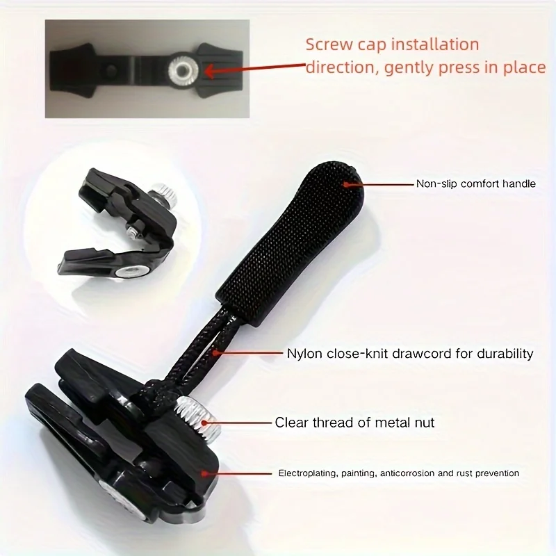 3/6pcs Replaceable Zipper Head, No Sewing Required, for Clothing Bags, Travel Bags, Wallets, Tents, Golf Bags and Other Zipper