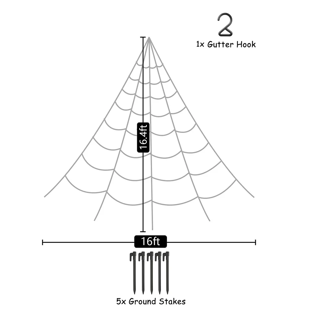 Halloween Triangle Spider Web,5m Large Plush Simulation Spider Web,Haunted Home Outdoor Yard Decoration Props