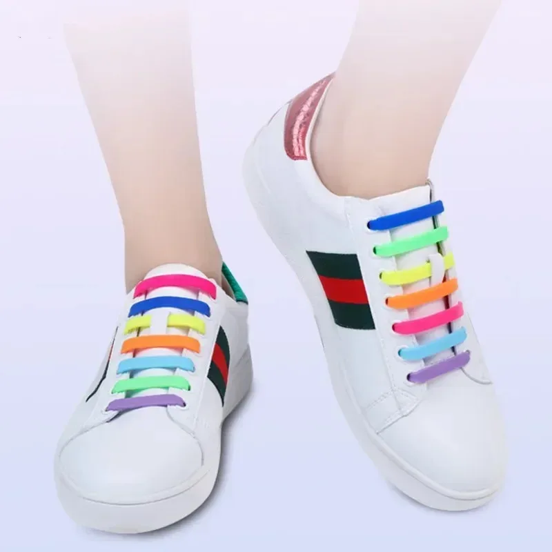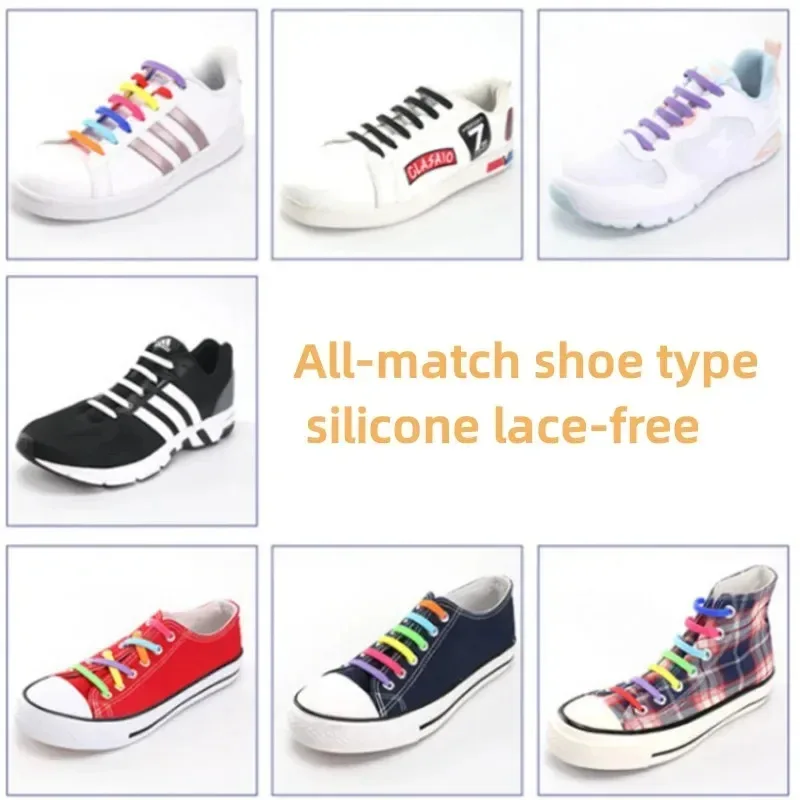 New 16Pcs Elastic Shoe Laces All Sneakers Silicone Stretch Shoelaces Uni Fashion No Tie Shoelace Rubber Band Shoelaces