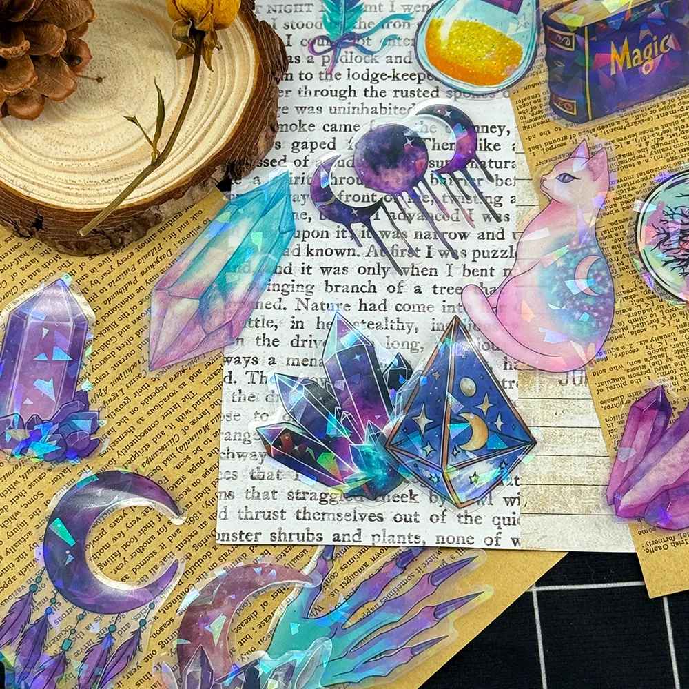 50Pcs Transparent PET Magic Witch Sparkling Film Sticker Pack Waterproof Transparent PET Hand Account Decor Guitar Notebook
