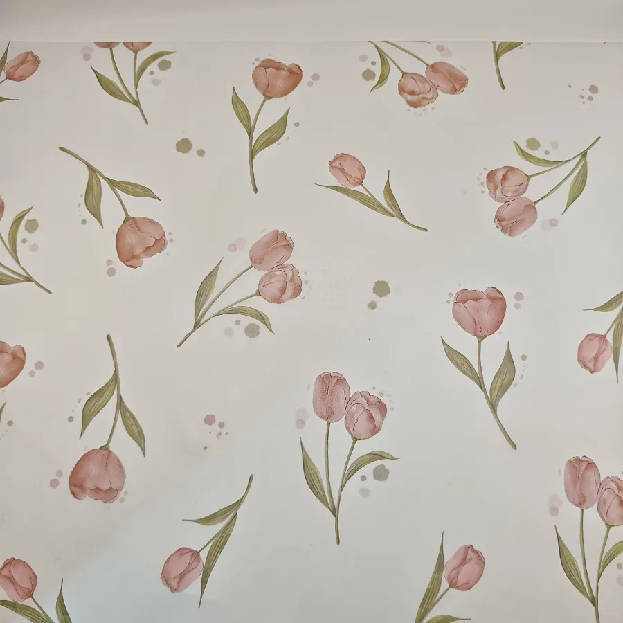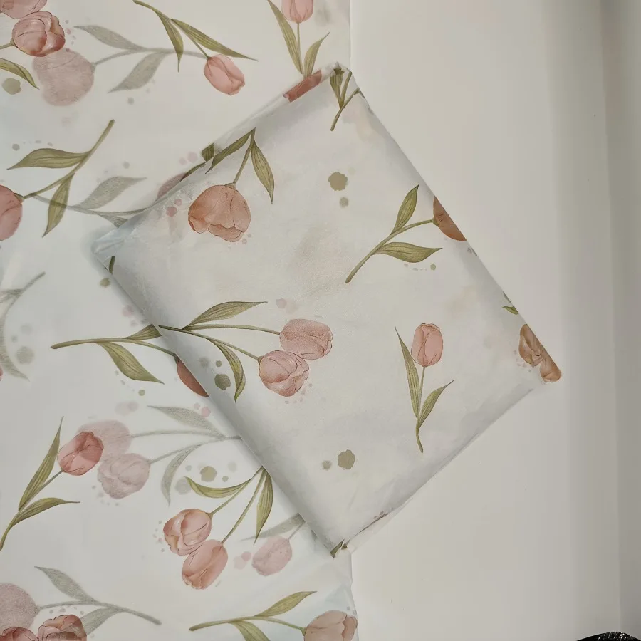 Elegant Tulip Patterned Tissue Paper Floral Design with Green Leaves For Gift Wrapping Wine Bottle Box Filling and Decorating
