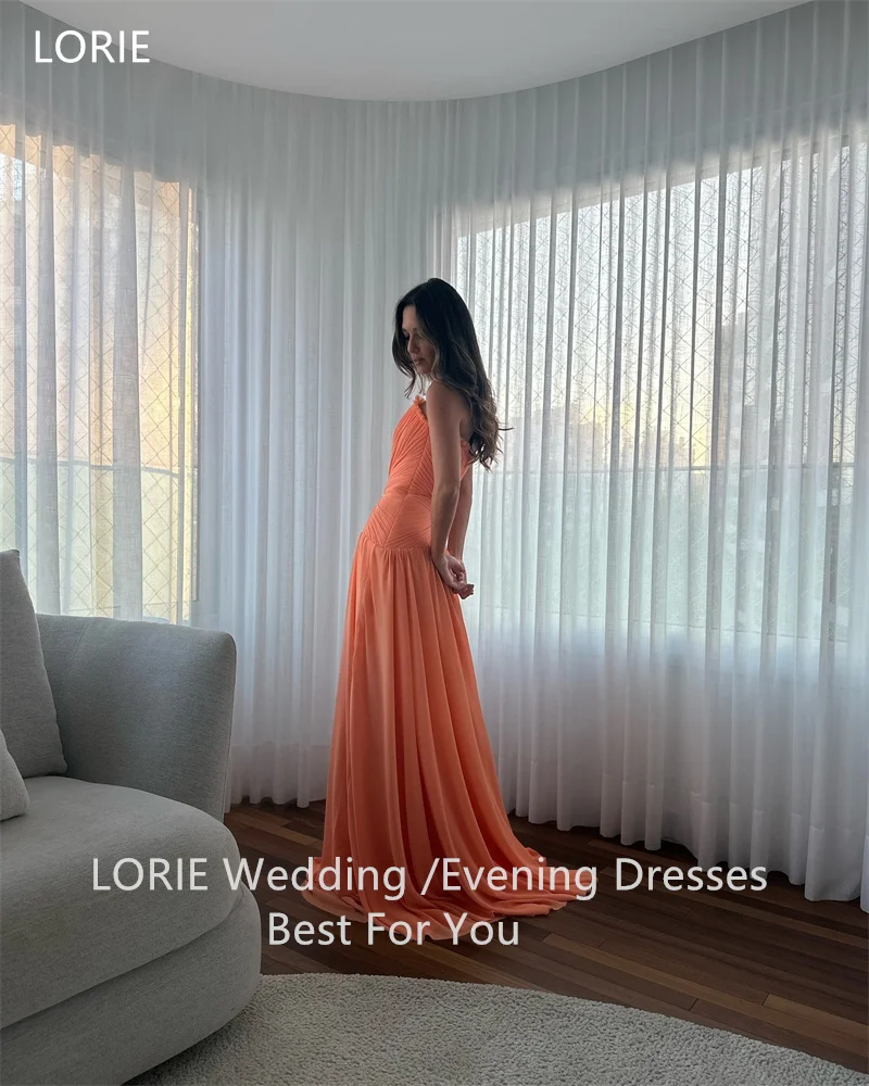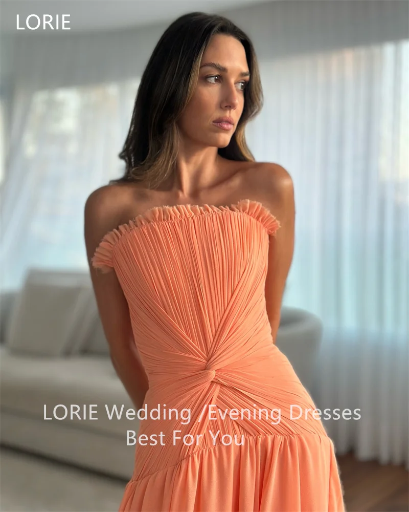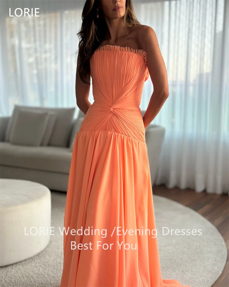 LORIE Orange A-line Evening Dresses Long Sense of design Pleat Strapless Party Dress Elegant Floor-Length Prom Gowns Customized