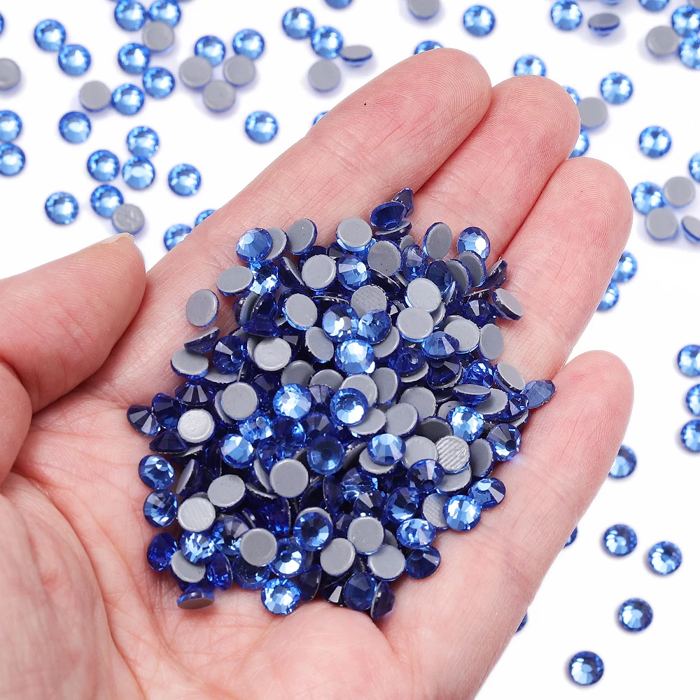QIIY SS6-SS30 Blue Series Glass Crystal Rhinestones Hot-fix Flatback Iron On Stones For Wedding Dress Fabric Clothes Decoration