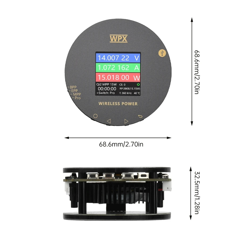 WPX-0001A LCD Color Screen Display Magnetic Wireless Charging Tester 25W Multifunctional Voltage Current Power Meter Tester