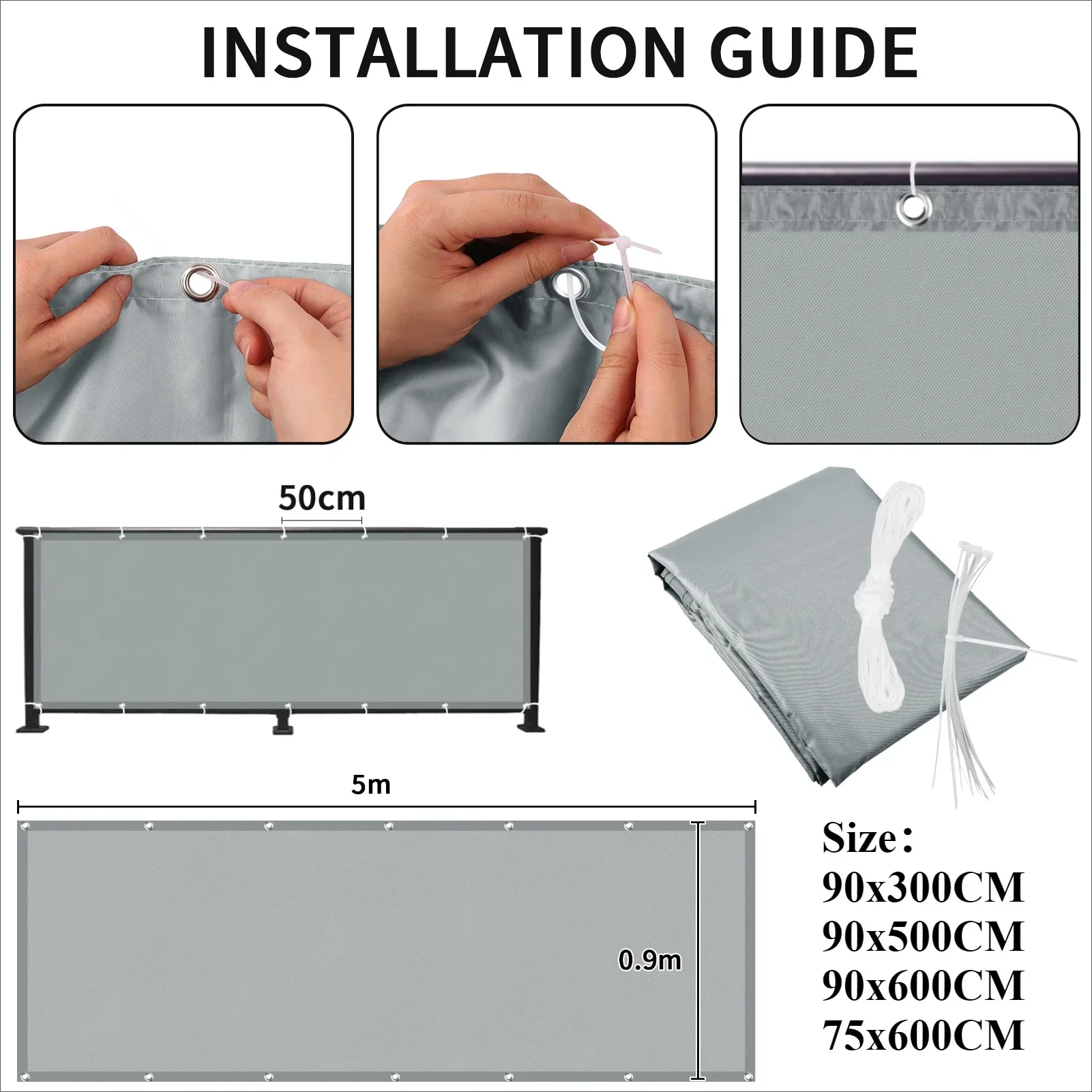 Balcony Privacy Screen Fence Windscreen Sun Shade Cloth with Grommets UV Protection for Patio Backyard Porch Railing Shield
