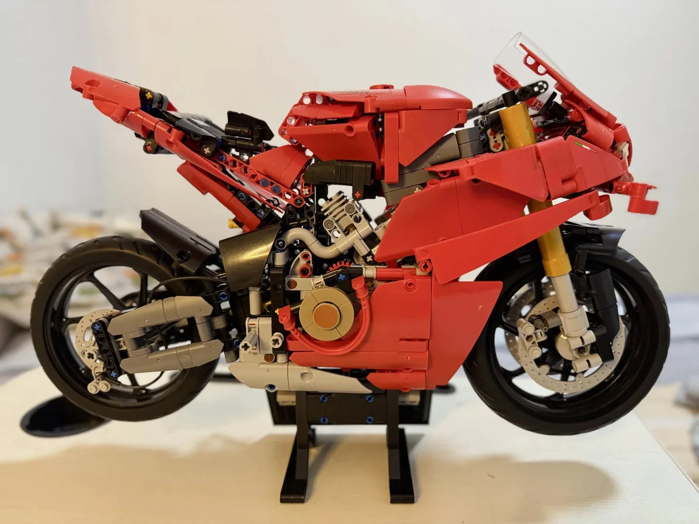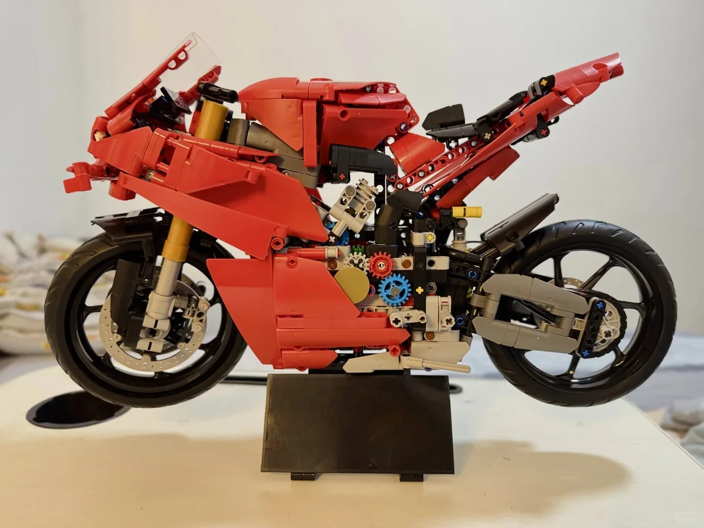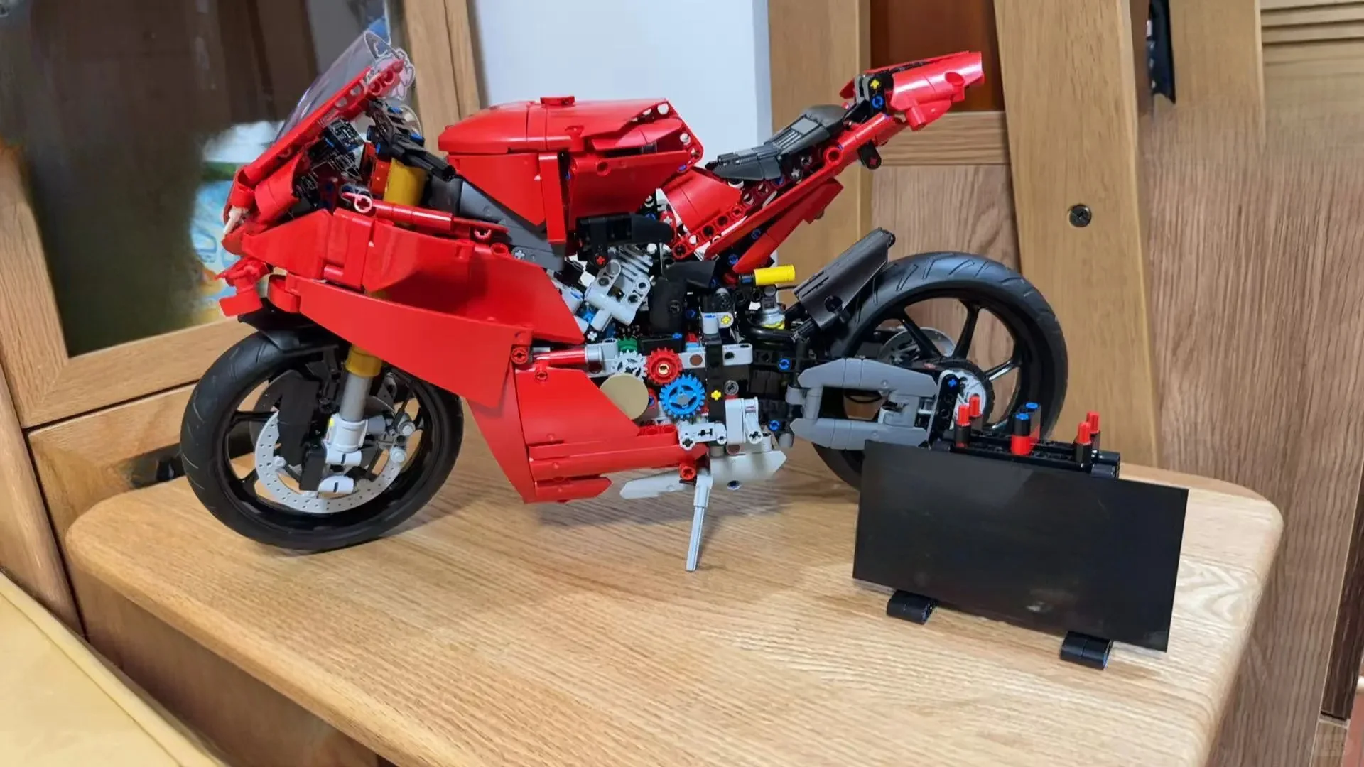 New MOC red motorcycle model building block display piece children's boy holiday gift
