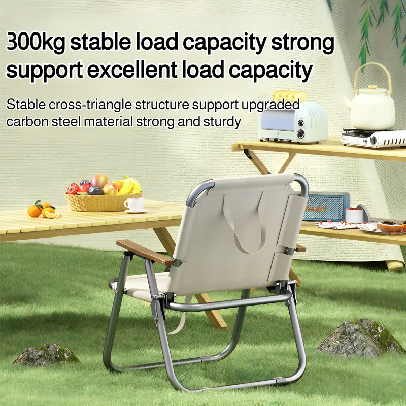 Portable Camping Chair Picnic Oxford Cloth Chair Beach Fishing Chair Outdoor Folding Beach Chair with Non-slip Mat Aluminum Blac