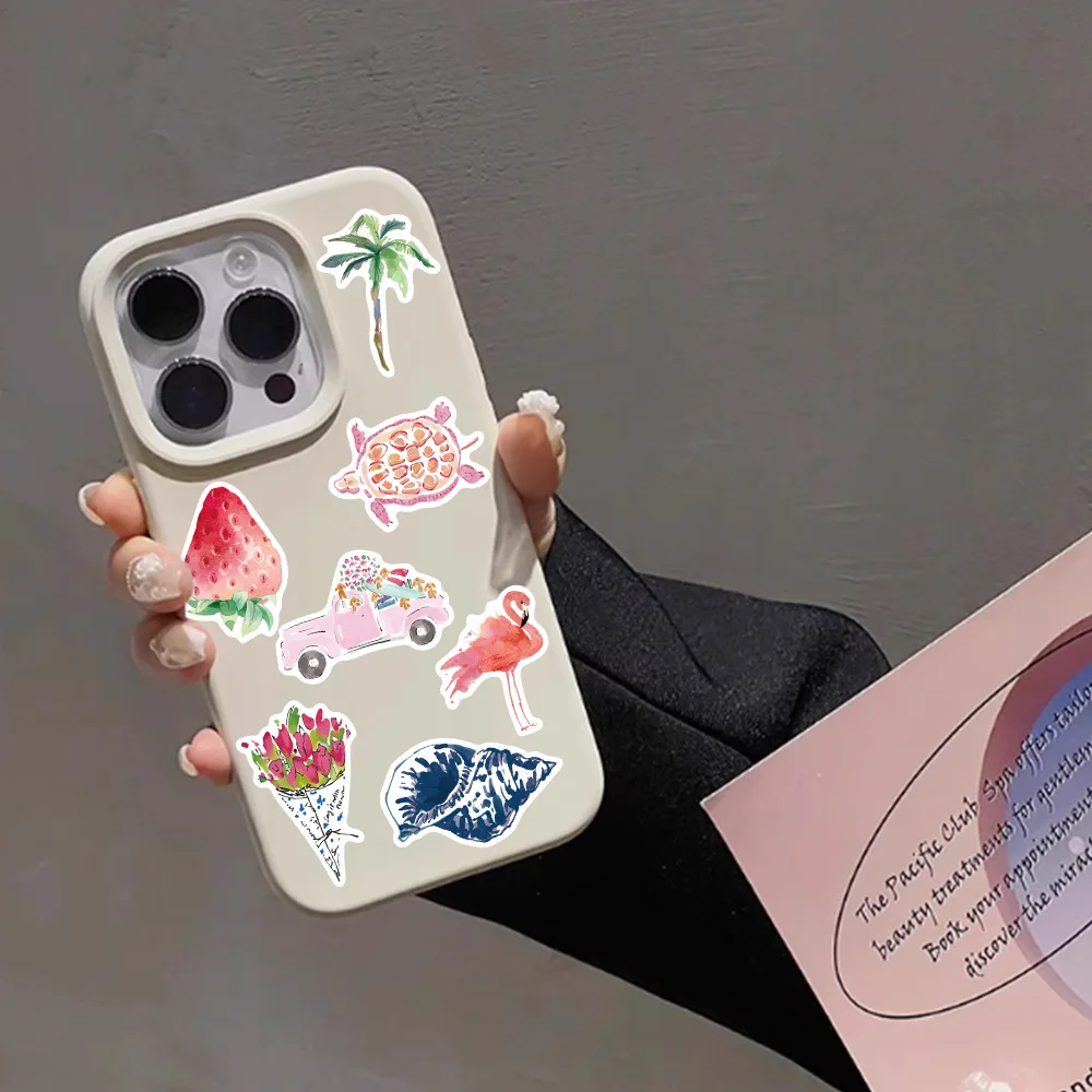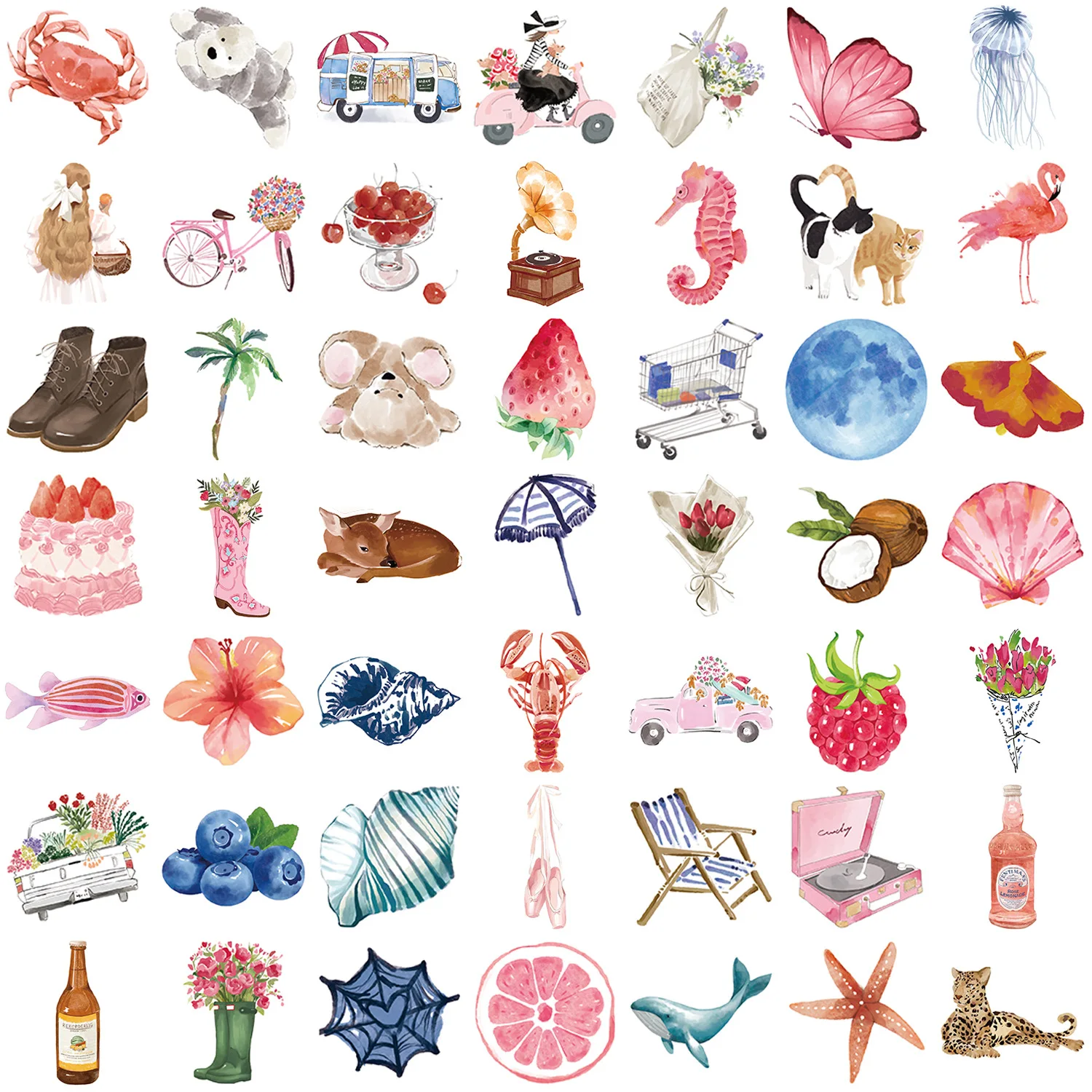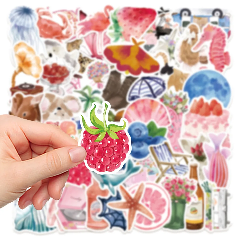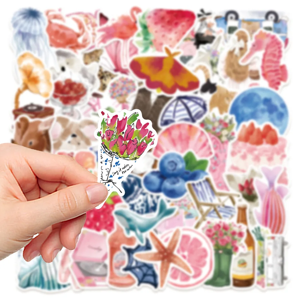 50Pcs Cute Pink Watercolor Stickers Diary DIY Stickers Scrapbooking Phone Luggage Skateboard Waterproof Decals