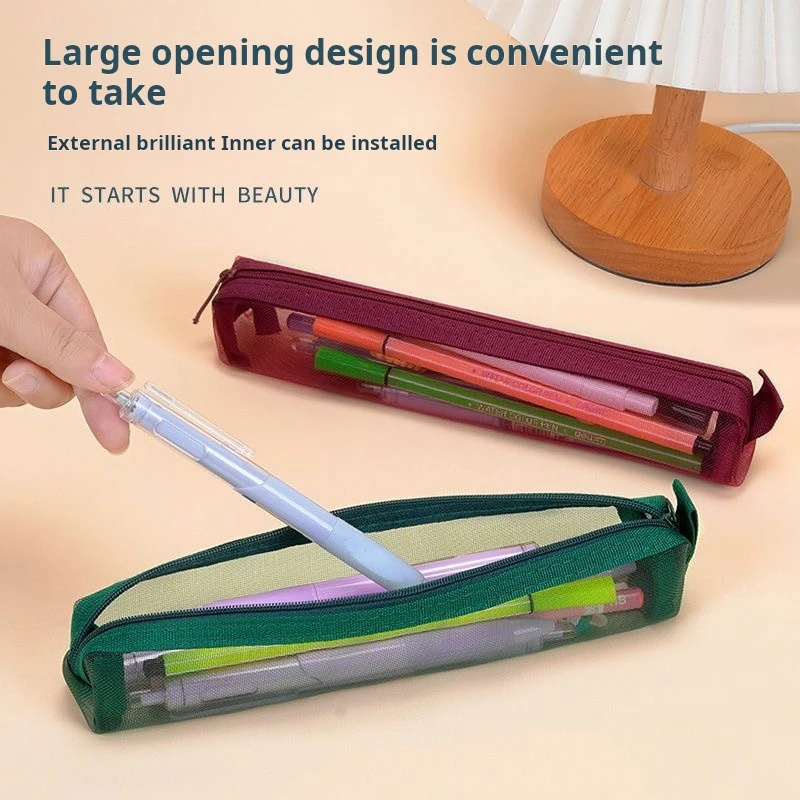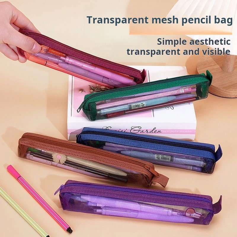 1 pcs Mesh Pencil Case Organizer Portable Exam Pencil Case Multi-Function Zippered Stationery Pouch School Supplies