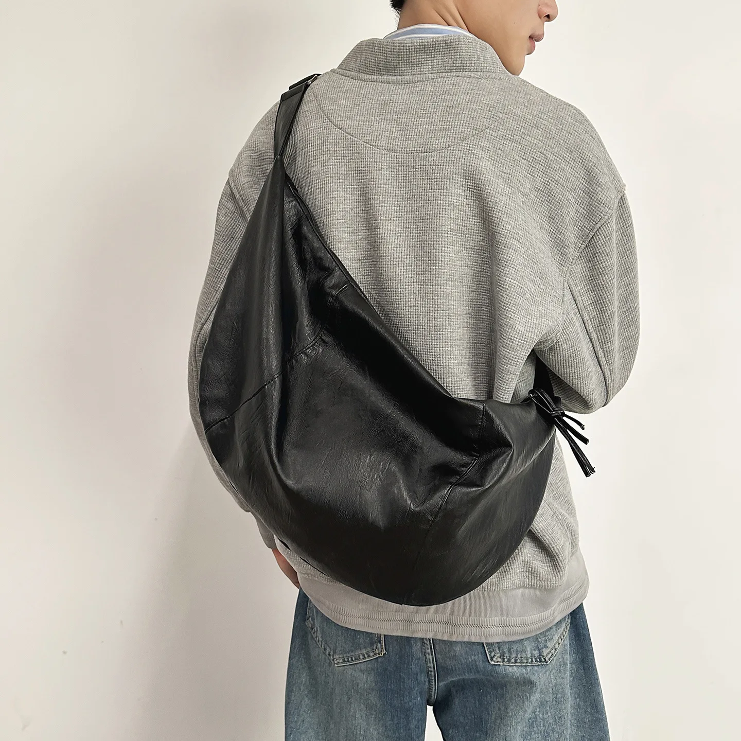 HOMEFISH Stylish Dumpling Shaped PU Crossbody Bag for Men, Suitable for Casual Outings and Large Capacity Needs