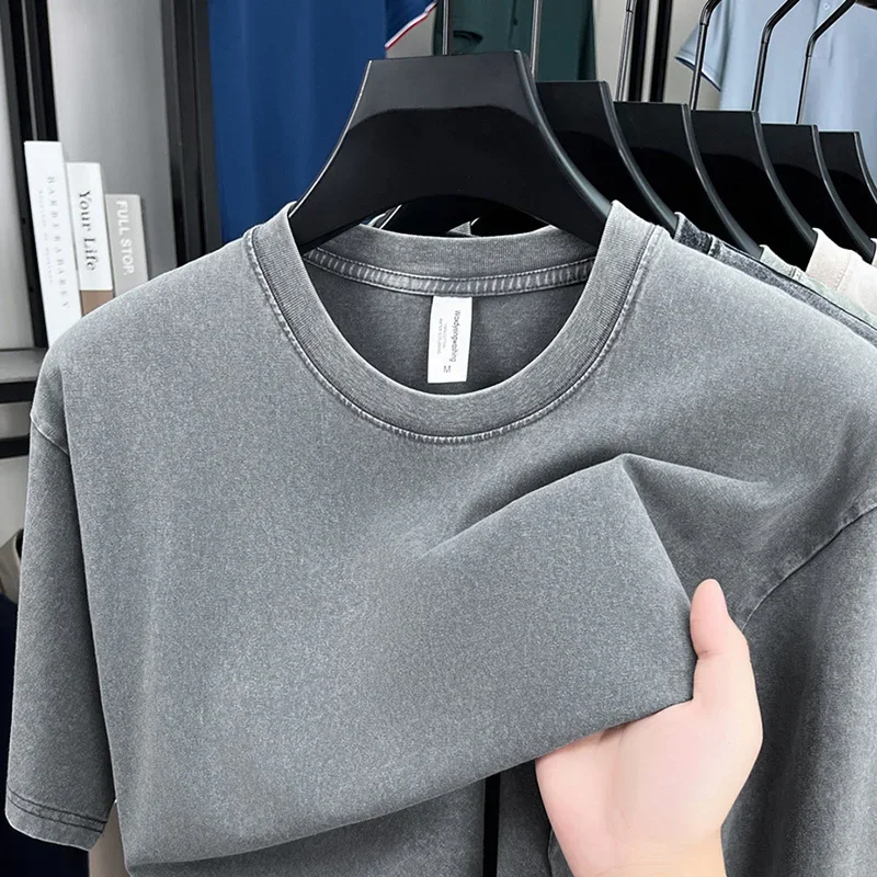 American Style Retro Heavyweight Solid Color Short Sleeved T-shirt Men Women Summer Street Trendy Washed Old Oversized Clothes