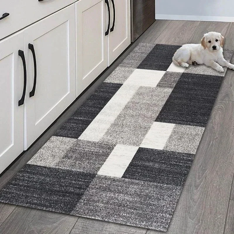 VIKAMA Simple Geometric Kitchen Floor Mats Living Room Floor Carpet Entrance Door Mat Hallway Door Non-Slip Foot Mats Home Decor