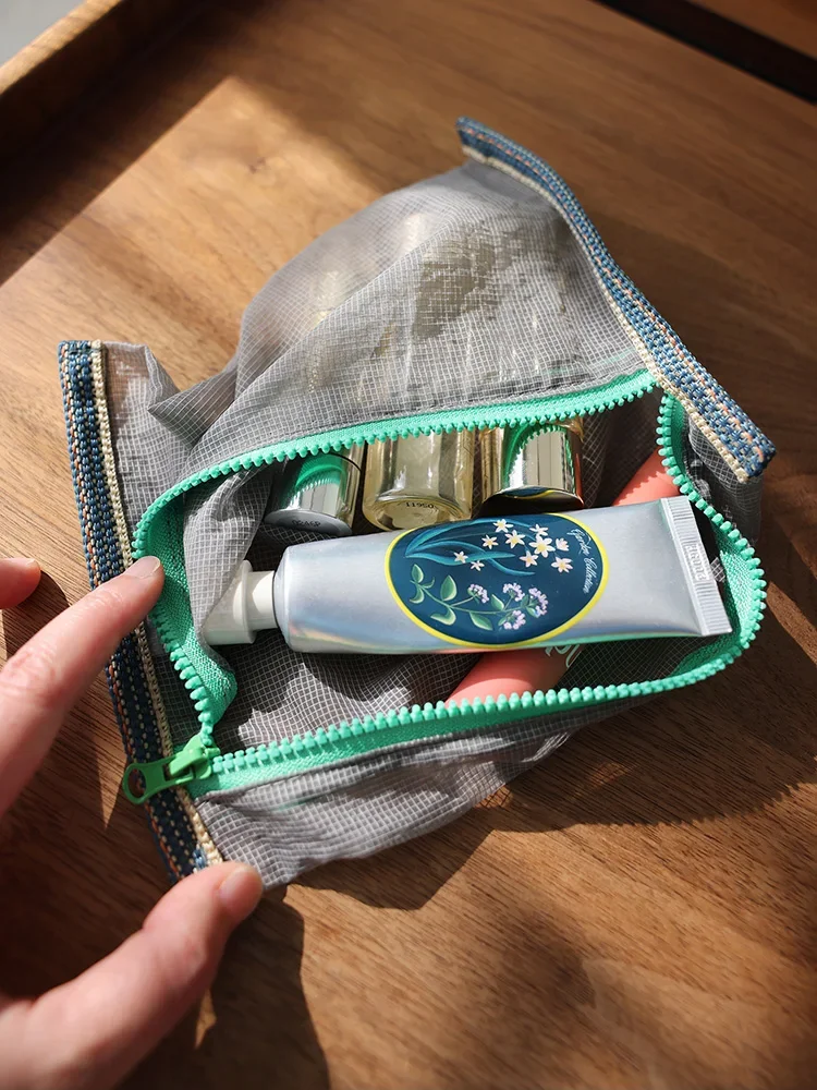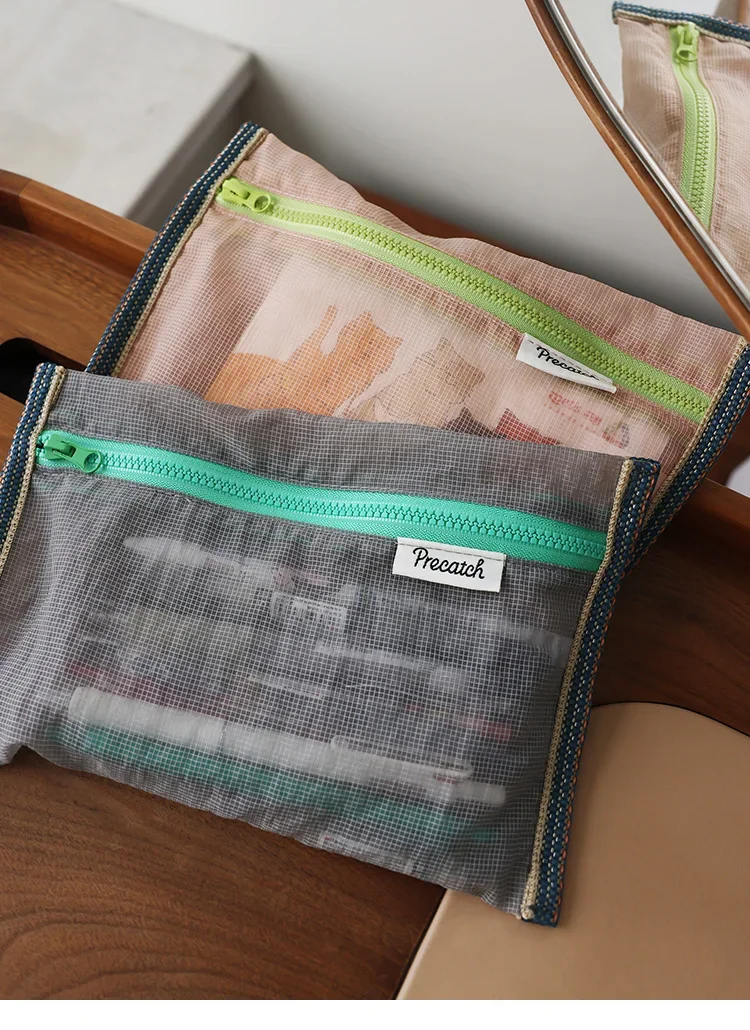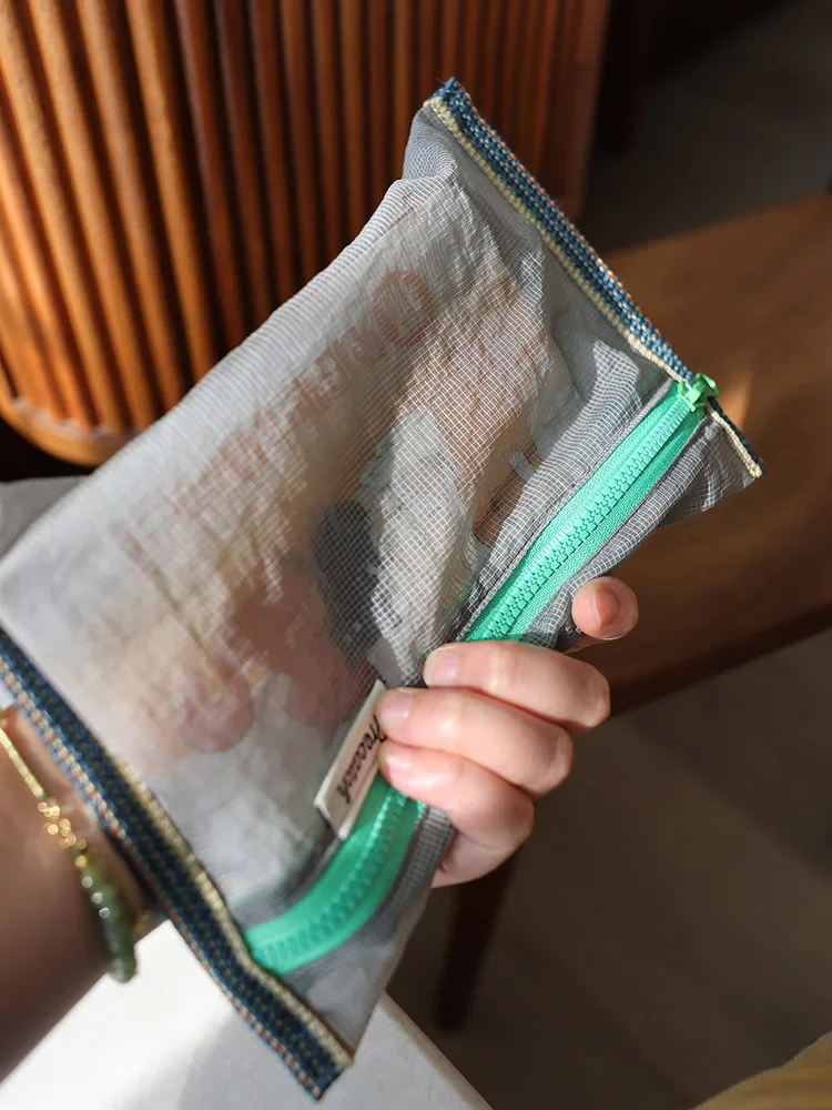 Translucent mesh nylon storage bag ID bag travel ticket data line pen storage portable thin foldable Cosmetic bag Pencil Case