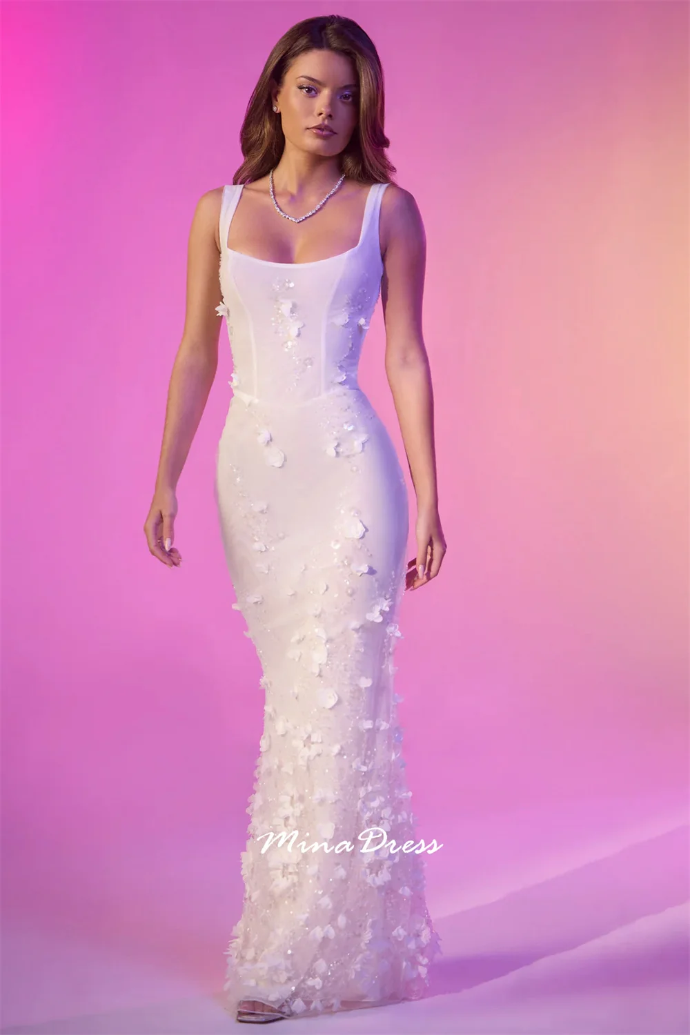 Mina Back-length Womens Dresses for Special Occasions Customized Flowers New in Dresses Gem Adjustable Wide Shoulder Strap Prom