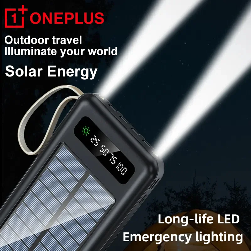 OnePlus Solar Power Bank 50000mAh Large Capacity Mobile Power Fast Charging Battery Dual USB 4 Cables For iPhone Samsung Huawei