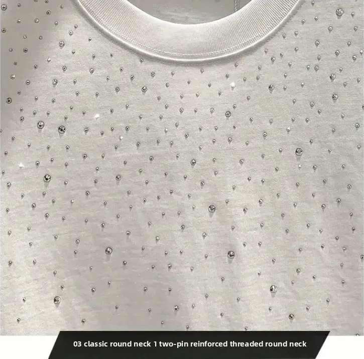 Summer Rhinestone Rivet T-shirt for Men Clothing Round Neck Casual T-shirt Fashion High Street 2025 Men's Summer Short Sleeves