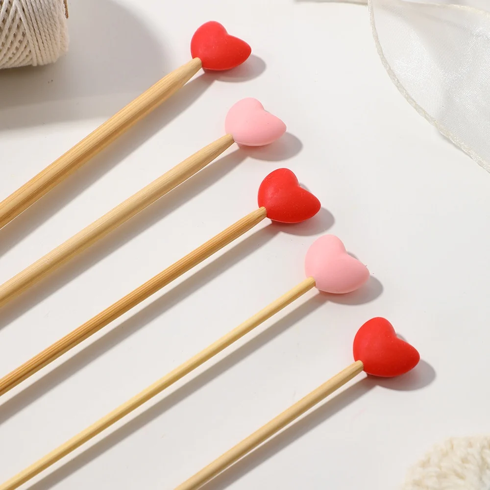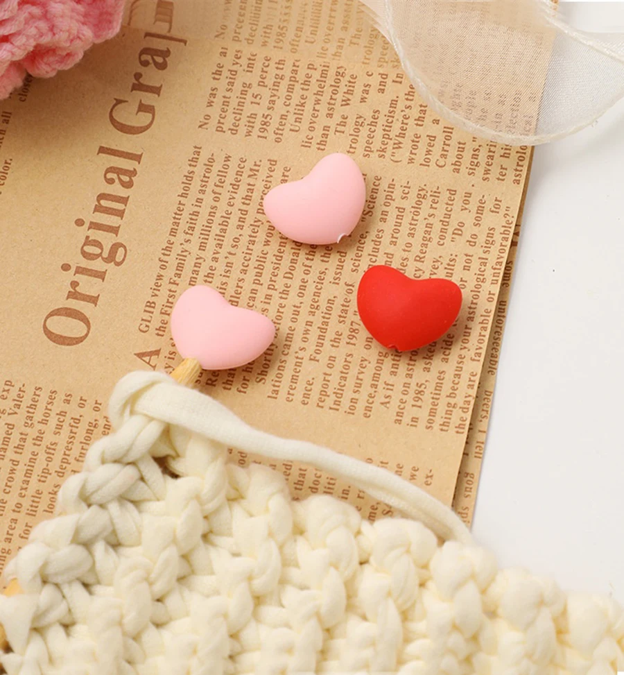 6pcs Knitting Needle Point Protectors Point Needle Stoppers Heart Shaped Stitches Stoppers Needle Caps Knitting Accessories