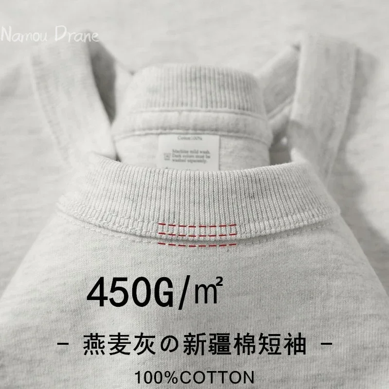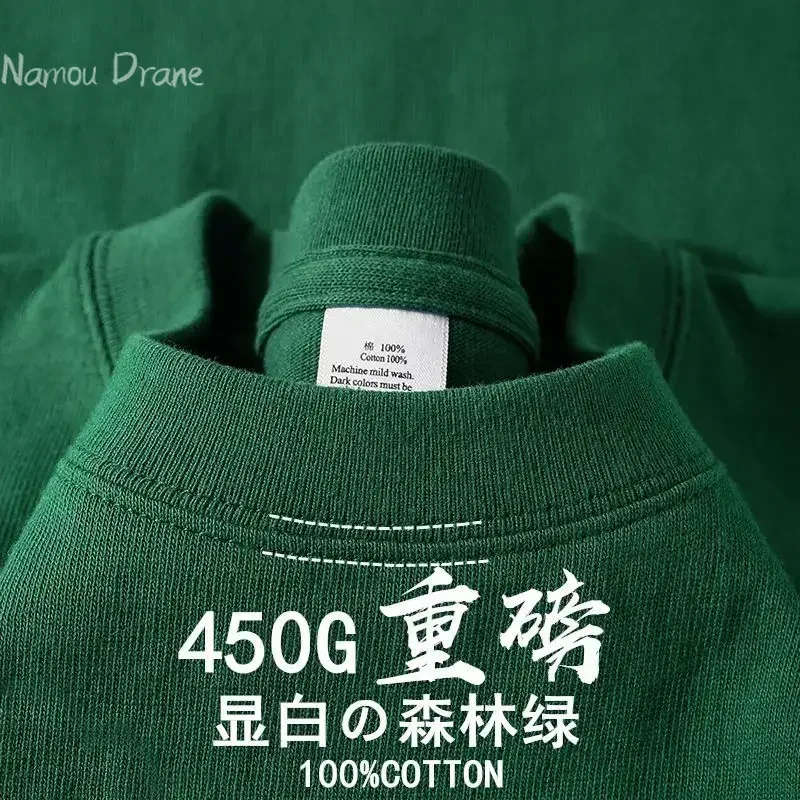 American 450g Heavy Cotton Short-sleeved T-shirt Men's and Women's Solid Color Loose Round Neck Top Bottoming Shirt Half-sleeved