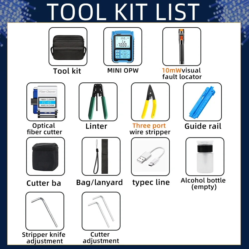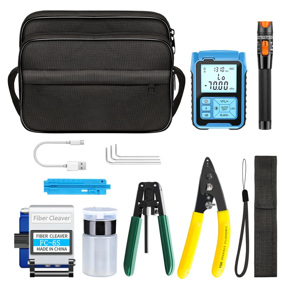 Optical Power Meter and 10mw Visual Fault Locator MINI OPM chargeable FC-6S Fiber Cleaver FTTH Fiber Optic Tool Kit
