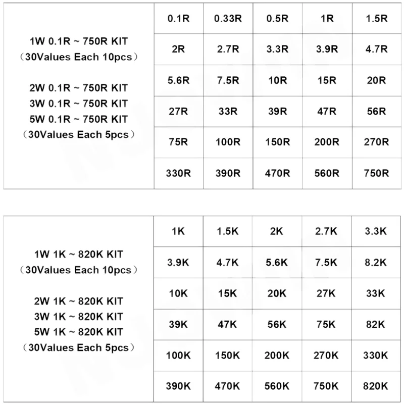 ALI shop - search results ... ... 150PCS/300PCS 1W 2W 3W 5W 30Values Carbon Film Resistor Assortment Kit 5% Resistance Set 0.1R-750R 1K-820K ohms DIY Pack ::: 2021 ::: :::
