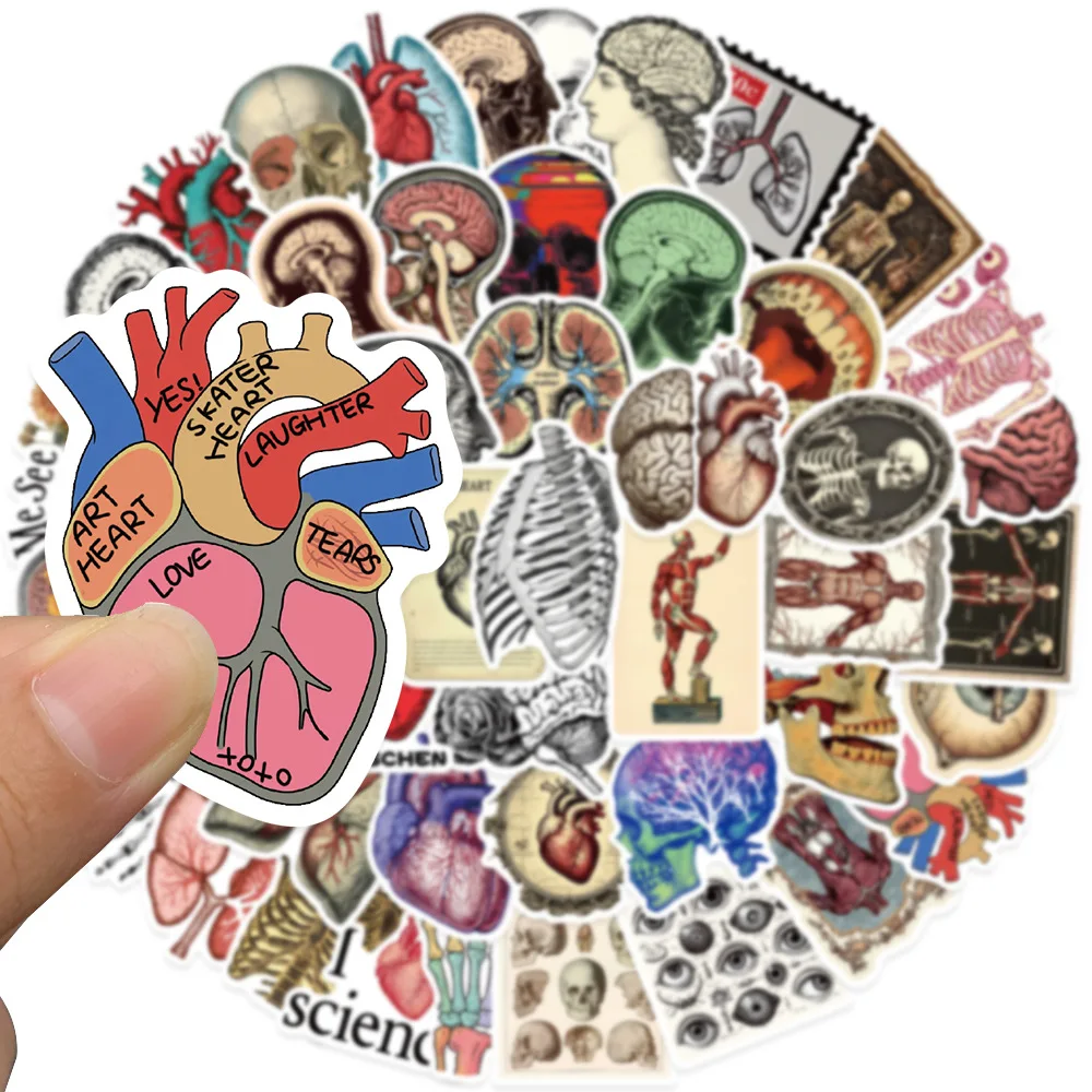 50Pcs Retro Scientific Anatomy Sticker Physiology Anatomy Luggage Laptop Cars PVC Guitar Coffee Skateboard Notebook Decals