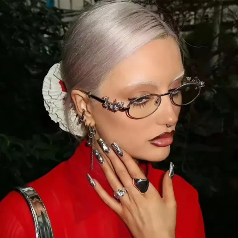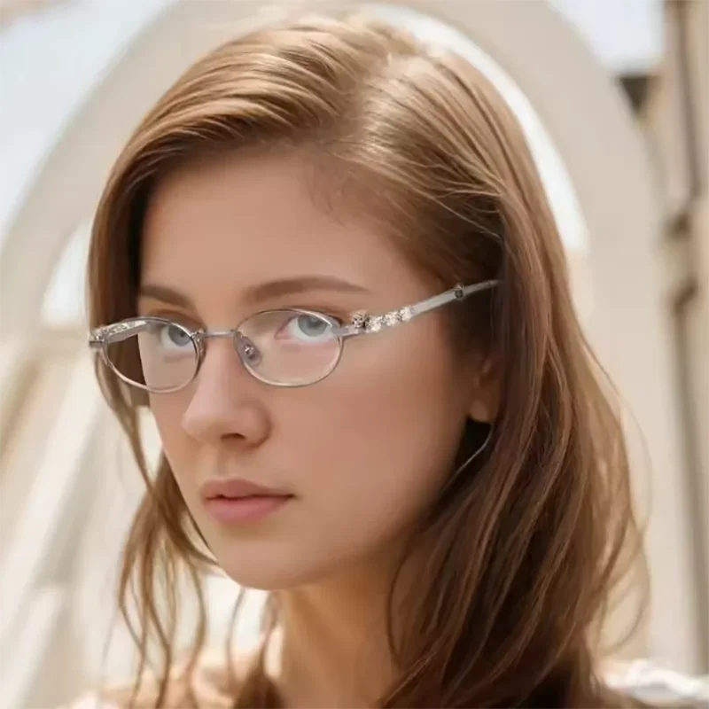 Luxury Diamond Metal Oval Frame Sunglasses for Women Small Frame Oval Sun Glasses UV400 Vintage Outdoor Eyeglasses Goggles