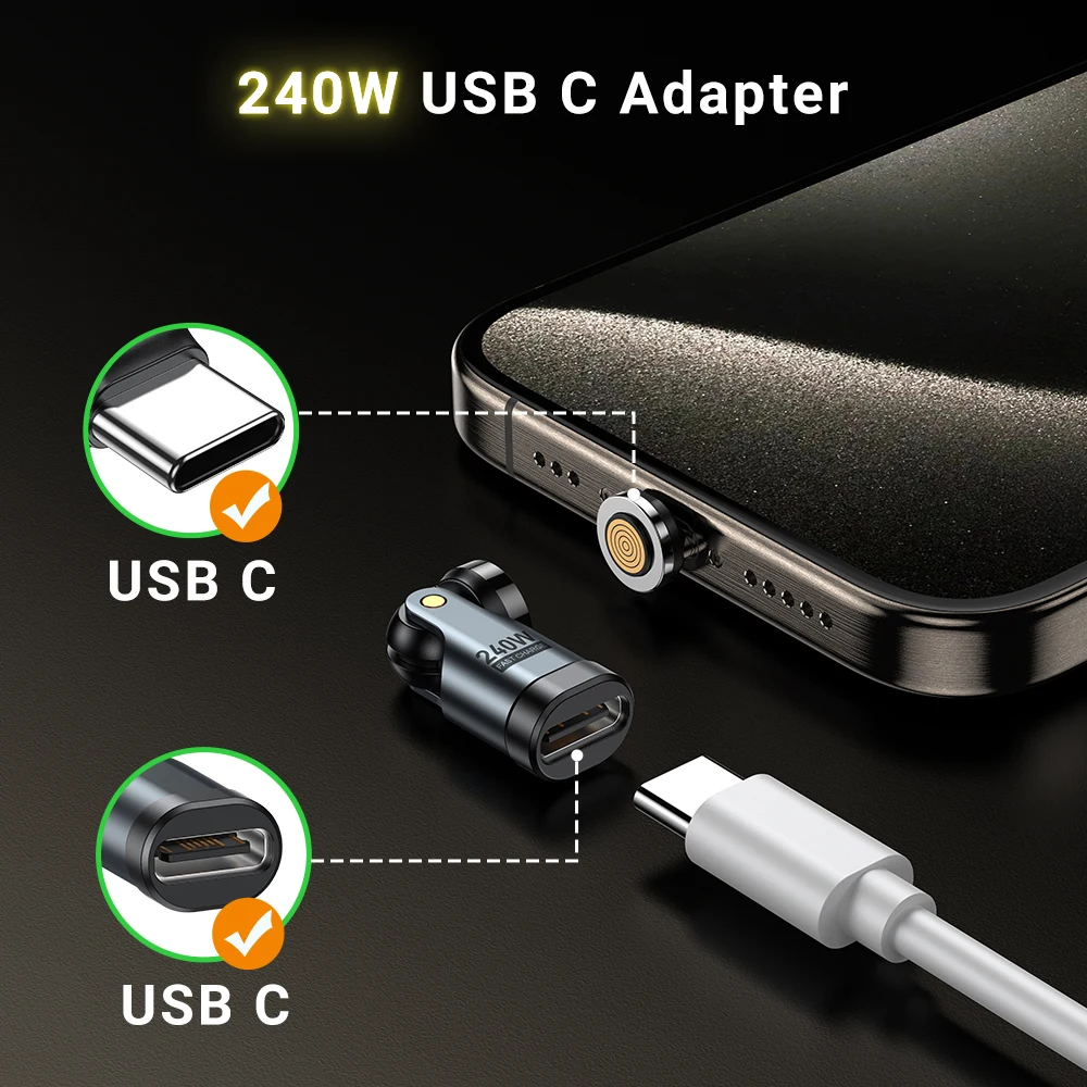 AUFU 2PCS 9Pin Magnetic USB C OTG Adapter PD 240W Fast Charging Magnet Type C Female Connector for iPhone Xiaomi Macbook Laptop