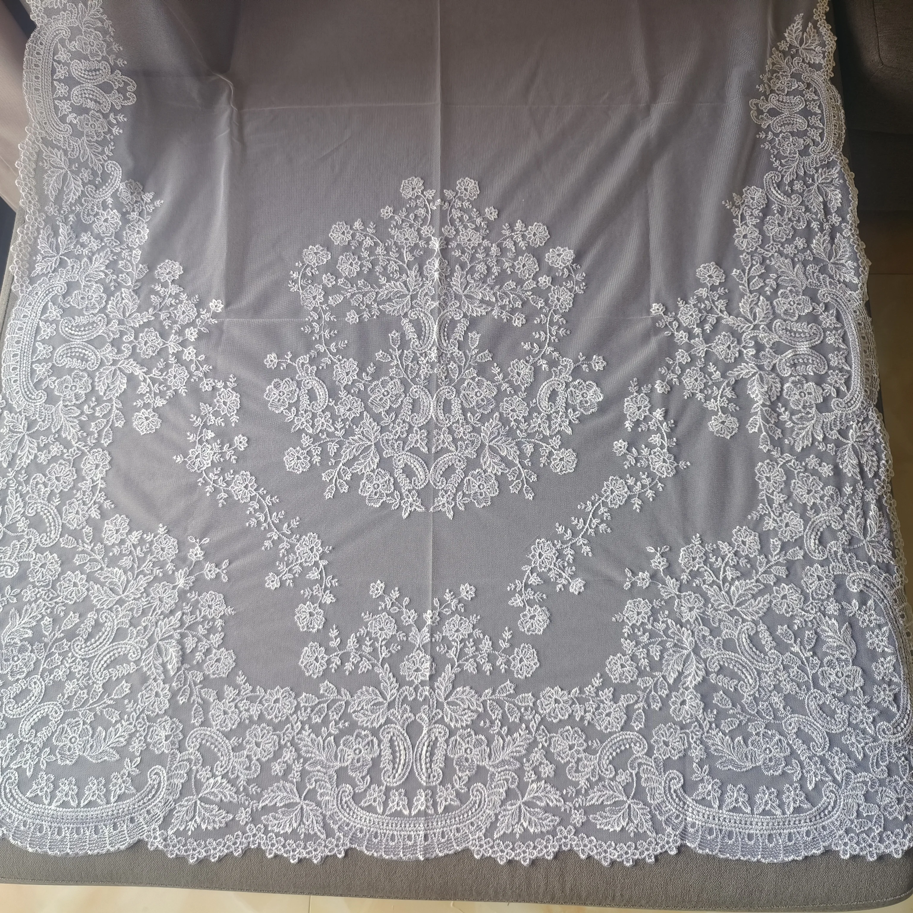 Embroidery White Spanish Lace Mantilla Mantel De Encaje Fallera Manteleta fallera blanca