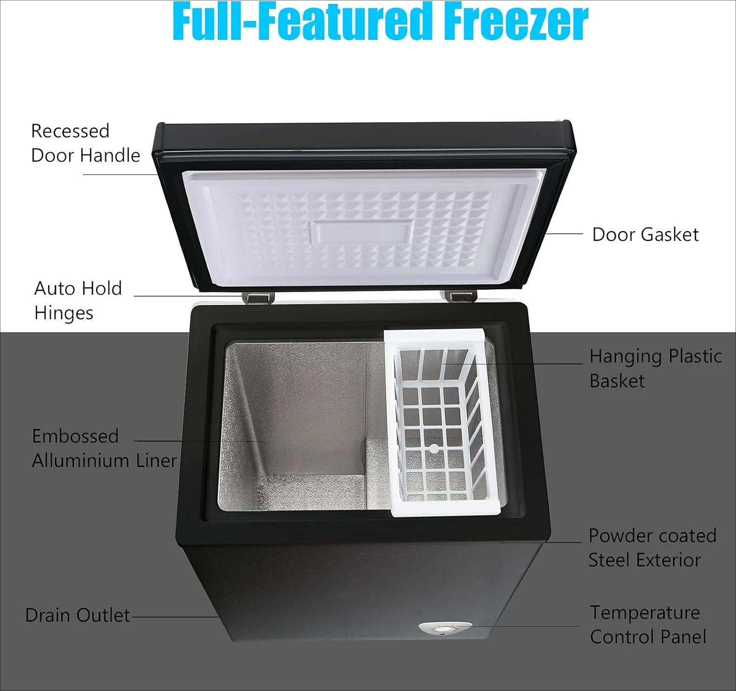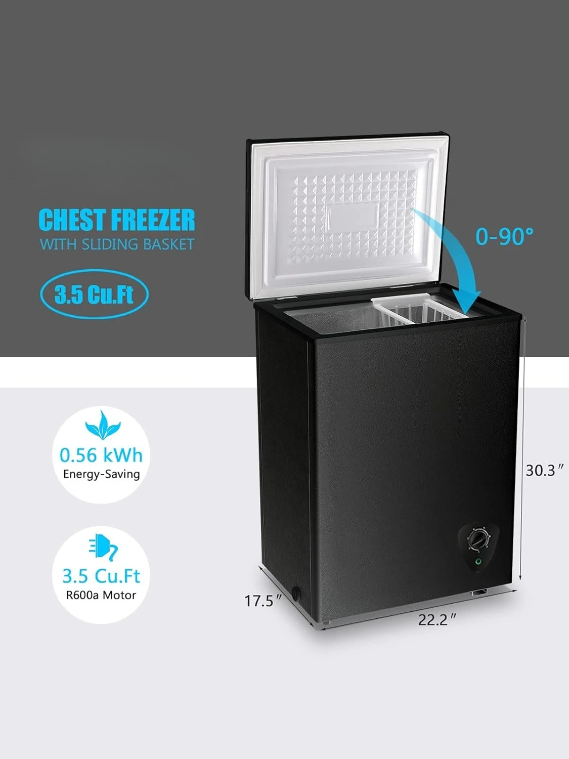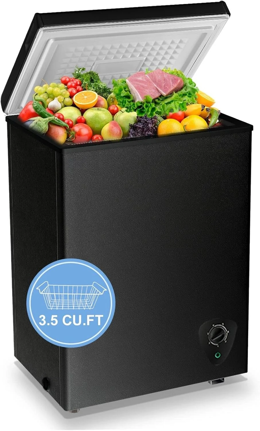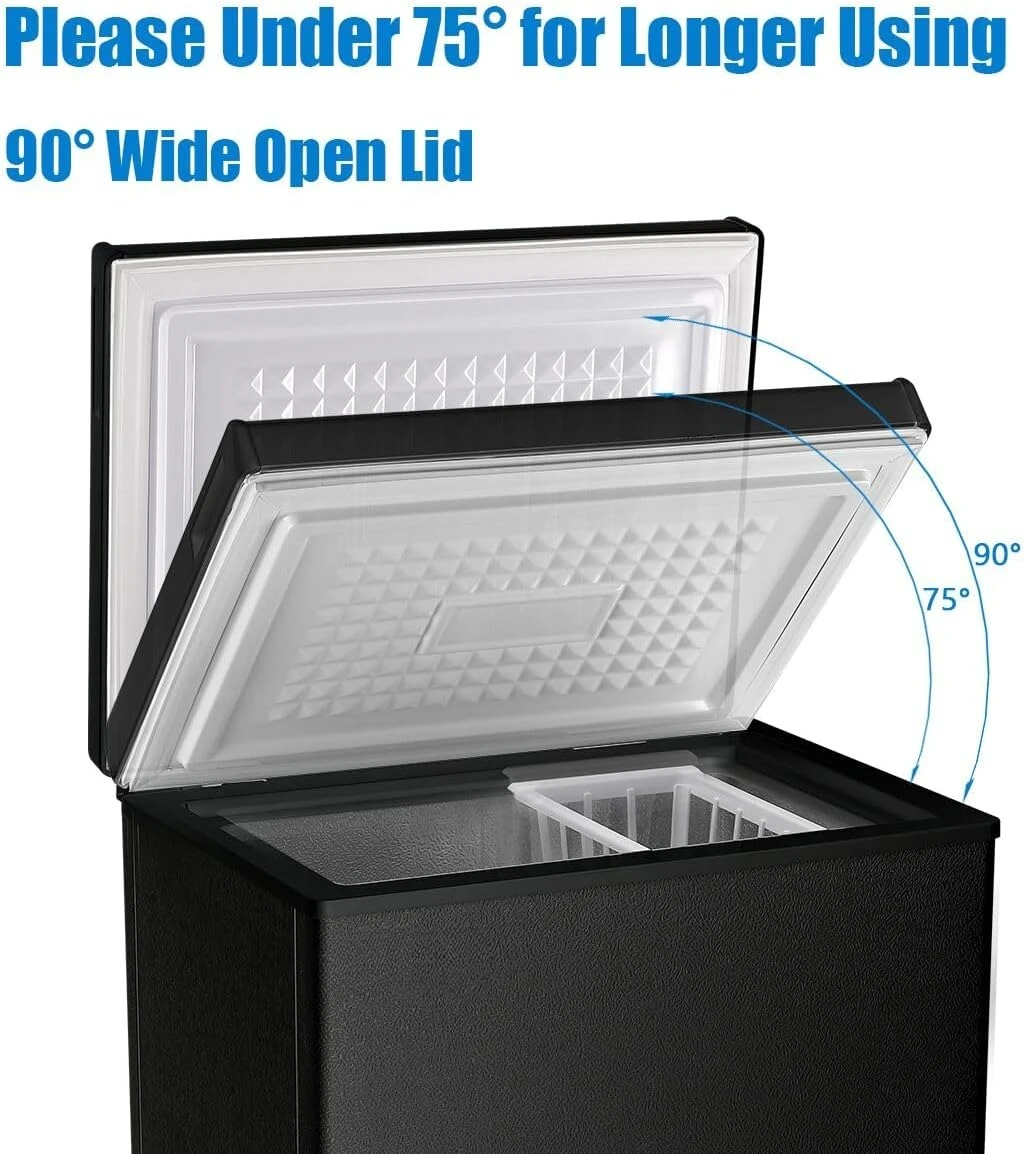 Small Freezer Black Deep Freezers 3.5 Cu.Ft Compact Free-Standing Top Door Adjustable 7 Thermostat and Removable Basket