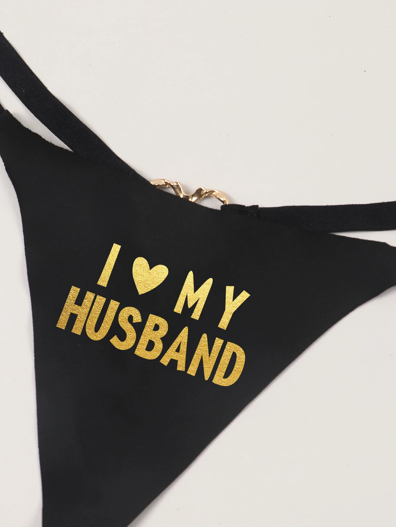 Varsbaby Cheeky Letter Printed G-string Underwear with I love my husband Prints Panties Playful Seamless T-back Bikini Thong
