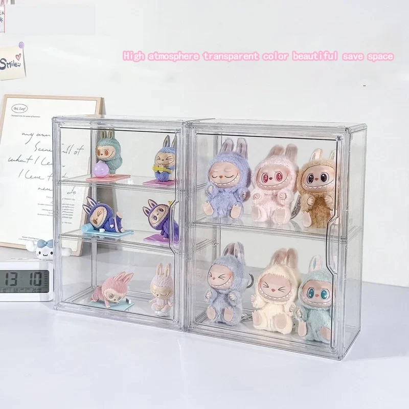 New Labubu Storage Box Transparent Acrylic Display Boxes Dustproof Doll Figure Blind Box Organizer Cabinet Display Stand