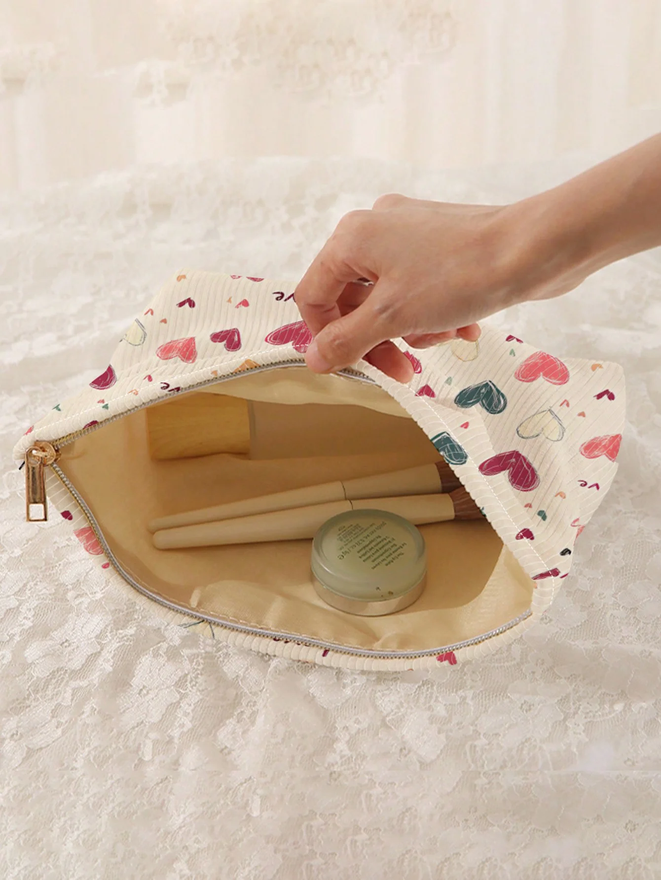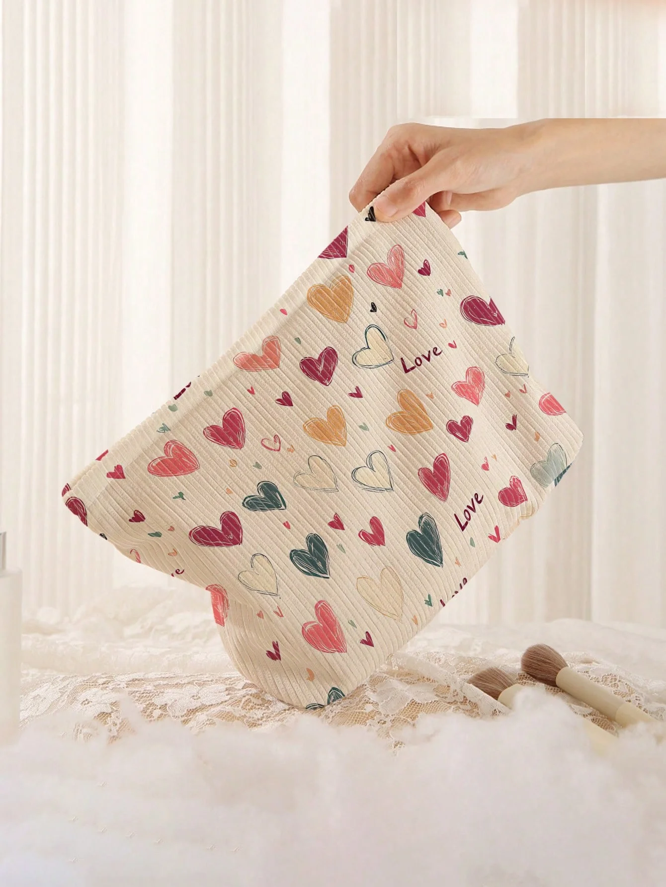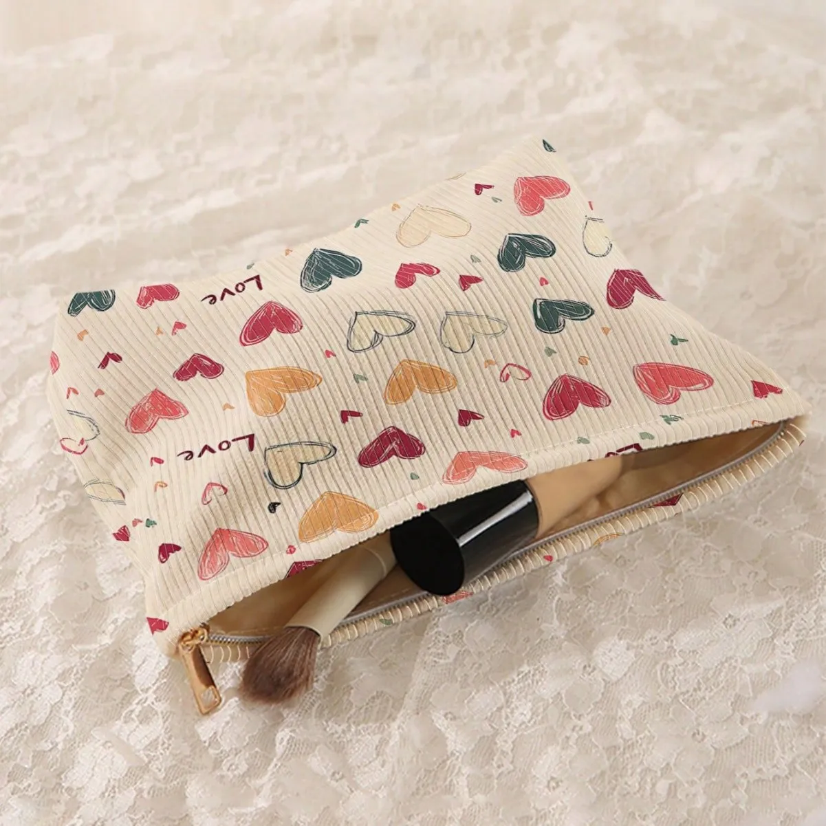 Portable Cosmetics Storage Bag Makeup bag with colorful heart pattern double-sided printed travel zipper makeup bag