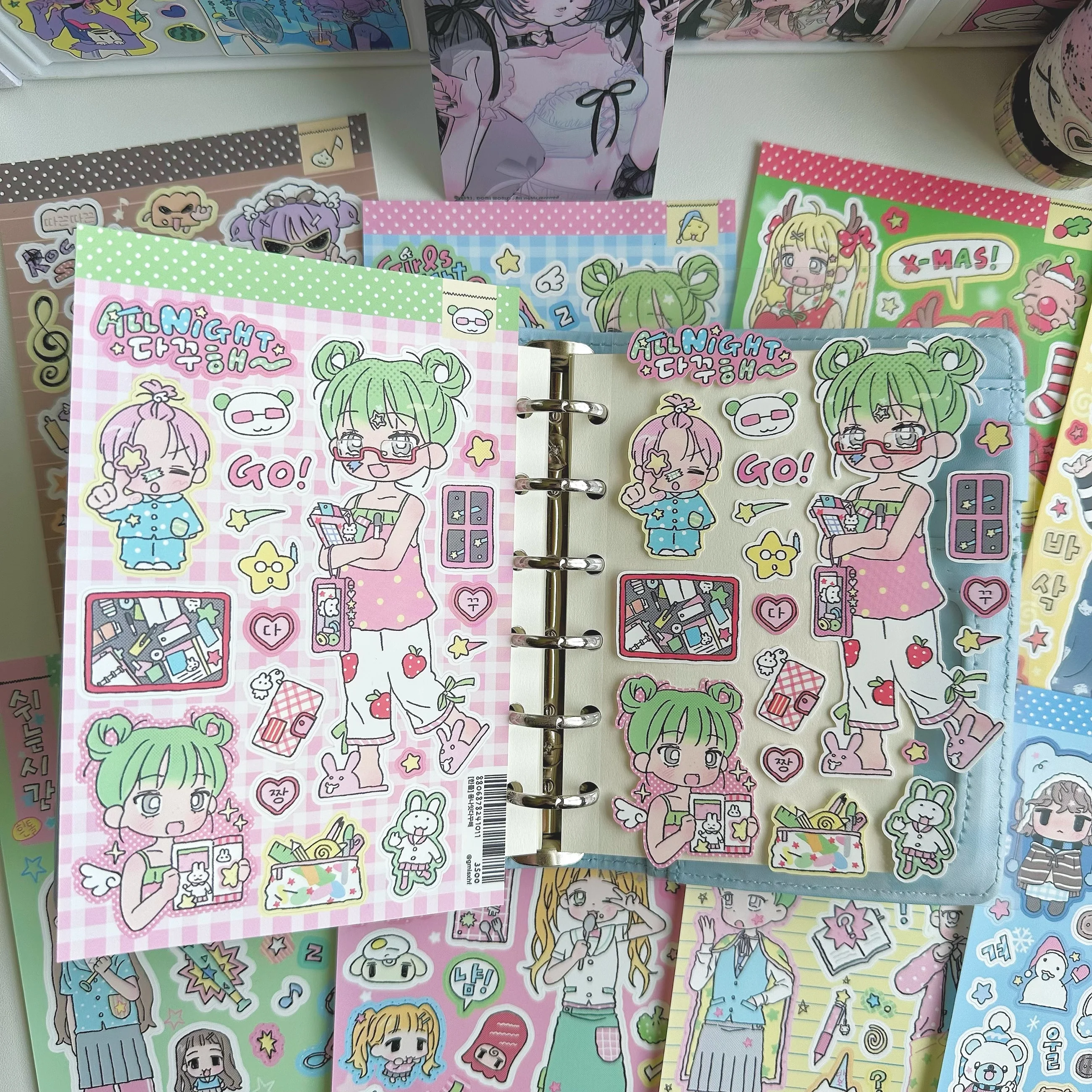 Korean Stickers Cute Girl Cartoon Character Stickers Hand Account Planner Diary Scrapbook Stationery DIY Decorative Stickers