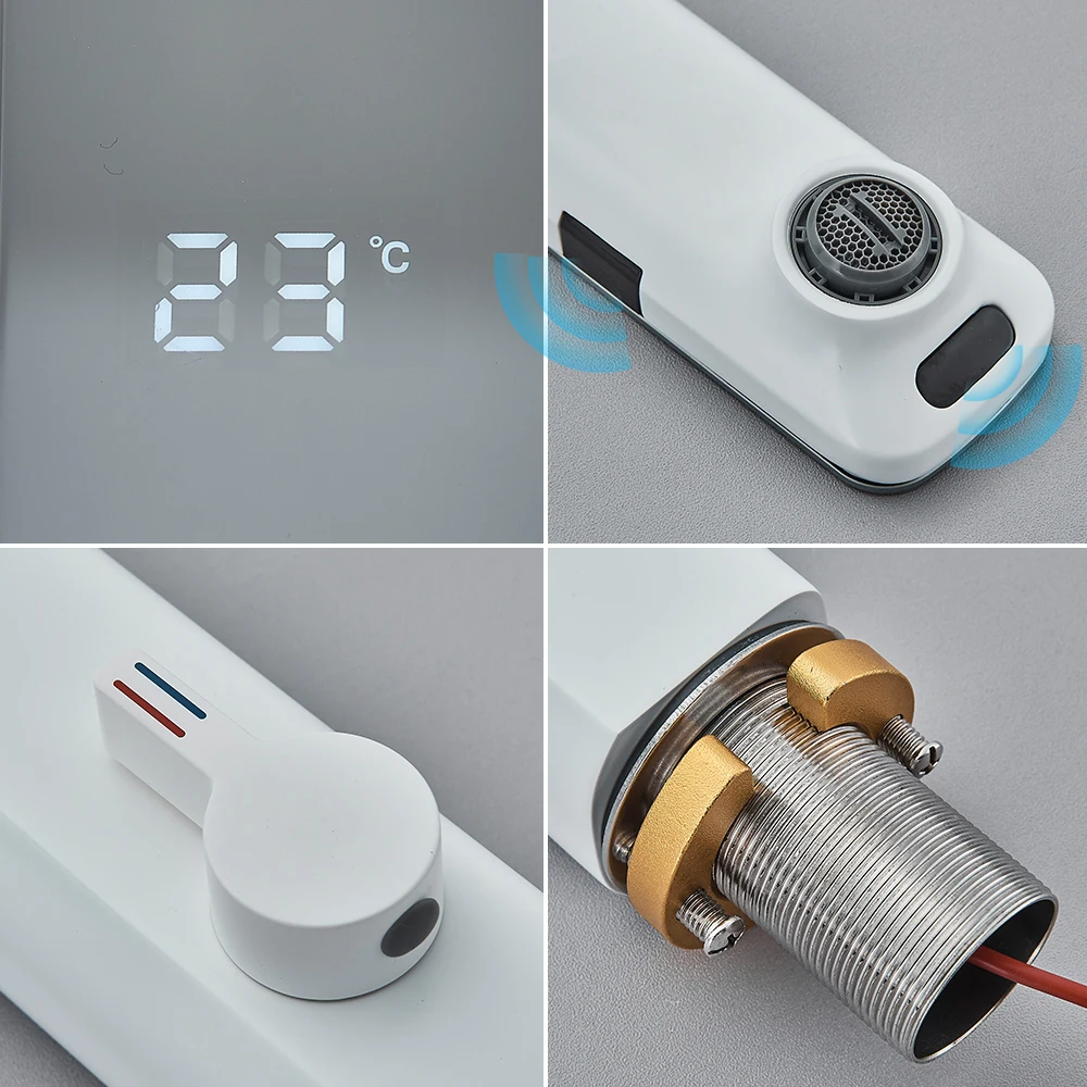 White Smart Sensor Basin Faucet Screen Digital Display Hot Cold Water Mixer Tap Touchless Vanity Sink Faucet For Bathroom