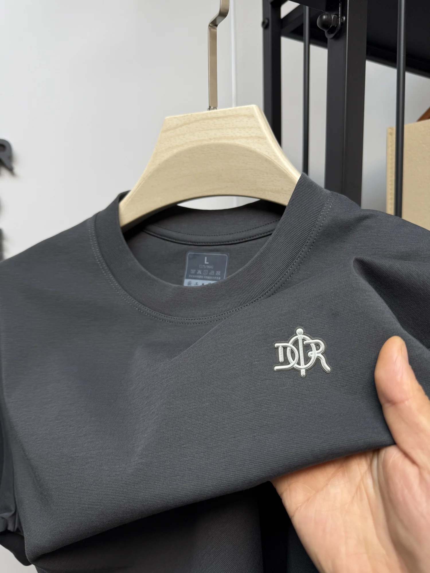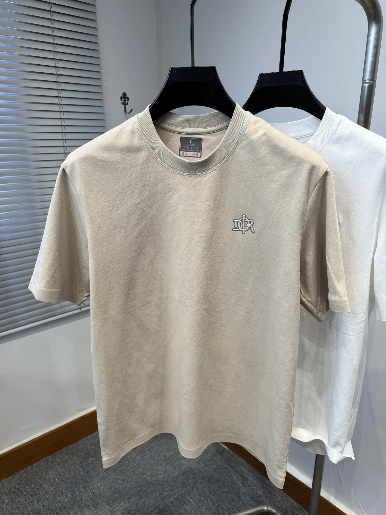 New men's seamless short sleeve round neck high-end brand T-shirt summer fashion high-end letter badge cotton casual sports top