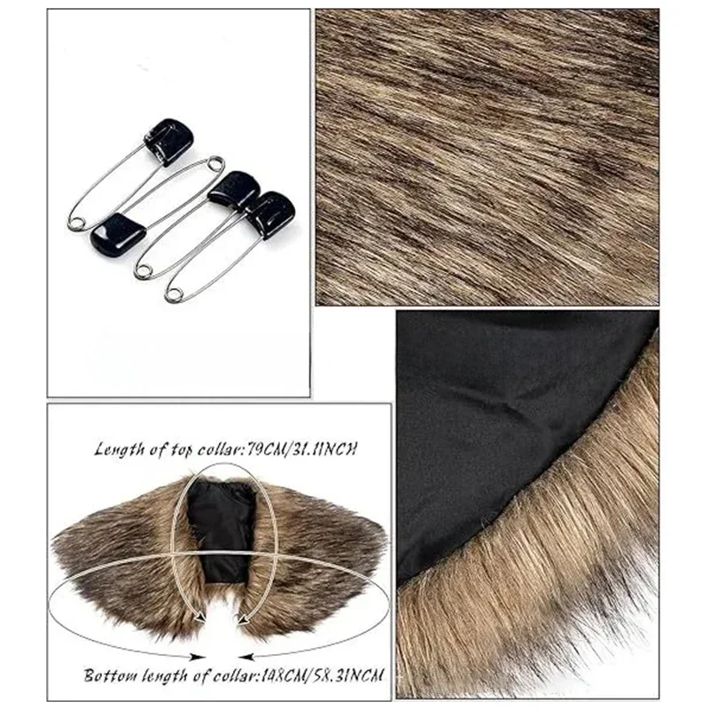 Warrior Style Medieval Faux Fur Cape Shoulder Cloak with Collar Retro Costume for Halloween Cosplay Fantasy Accessories