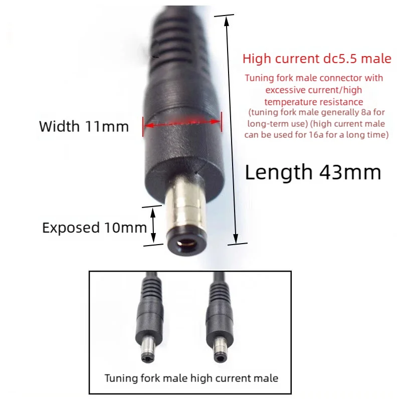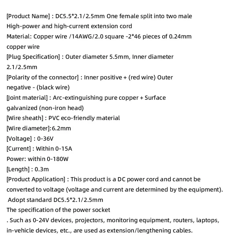 DC5521/5525 Power Plug 14AWG high-power 5.5*2.1/2.5mm Connector, 1Female to 2Male Power Cable, Power Supply Adapter