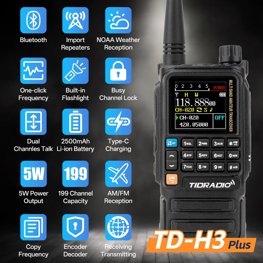 TIDRADIO H3 PLUS Wireless Station HAM Air Band Long Range Walkie Talkies Wireless Programming Two Way Radio Communications