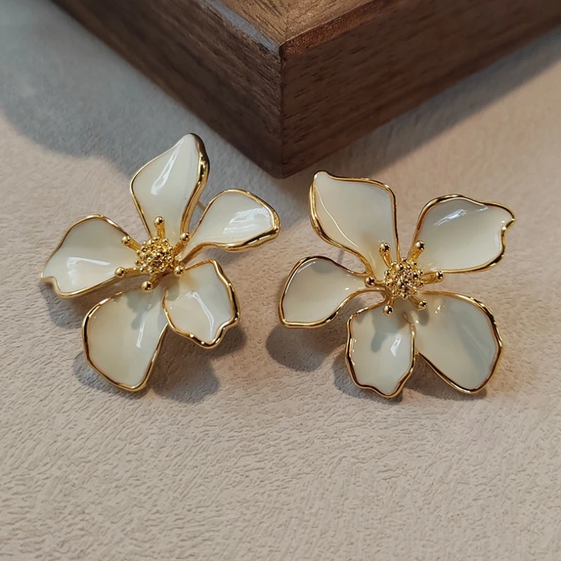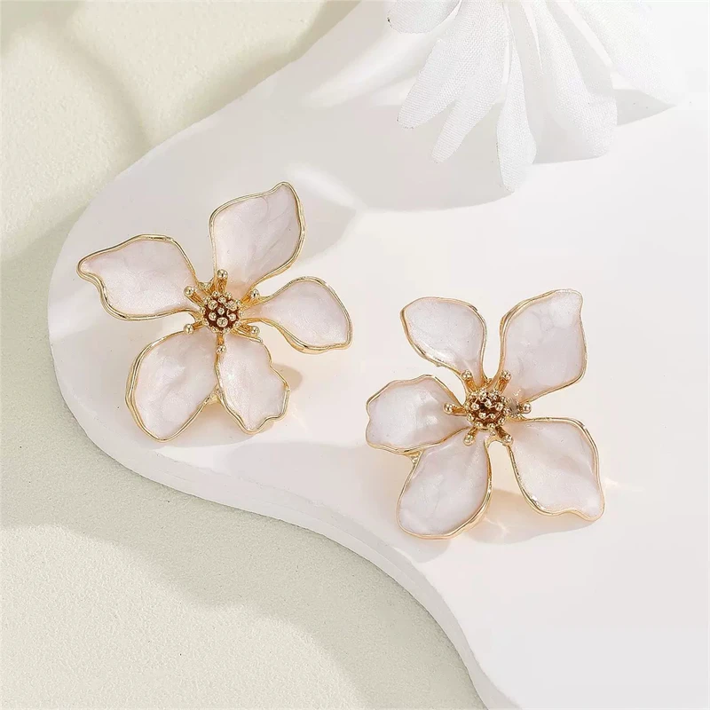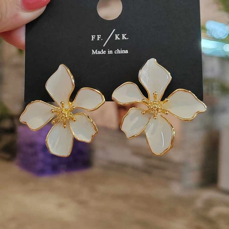 aliexpress , ali , shop , ali shop , online , store , online shop , online store , buy , sell , Beige Green Enamel Flower Women's Earrings Irregular Petals Plant Element Drop Earrings for Female Korean Fashion Ear Decor