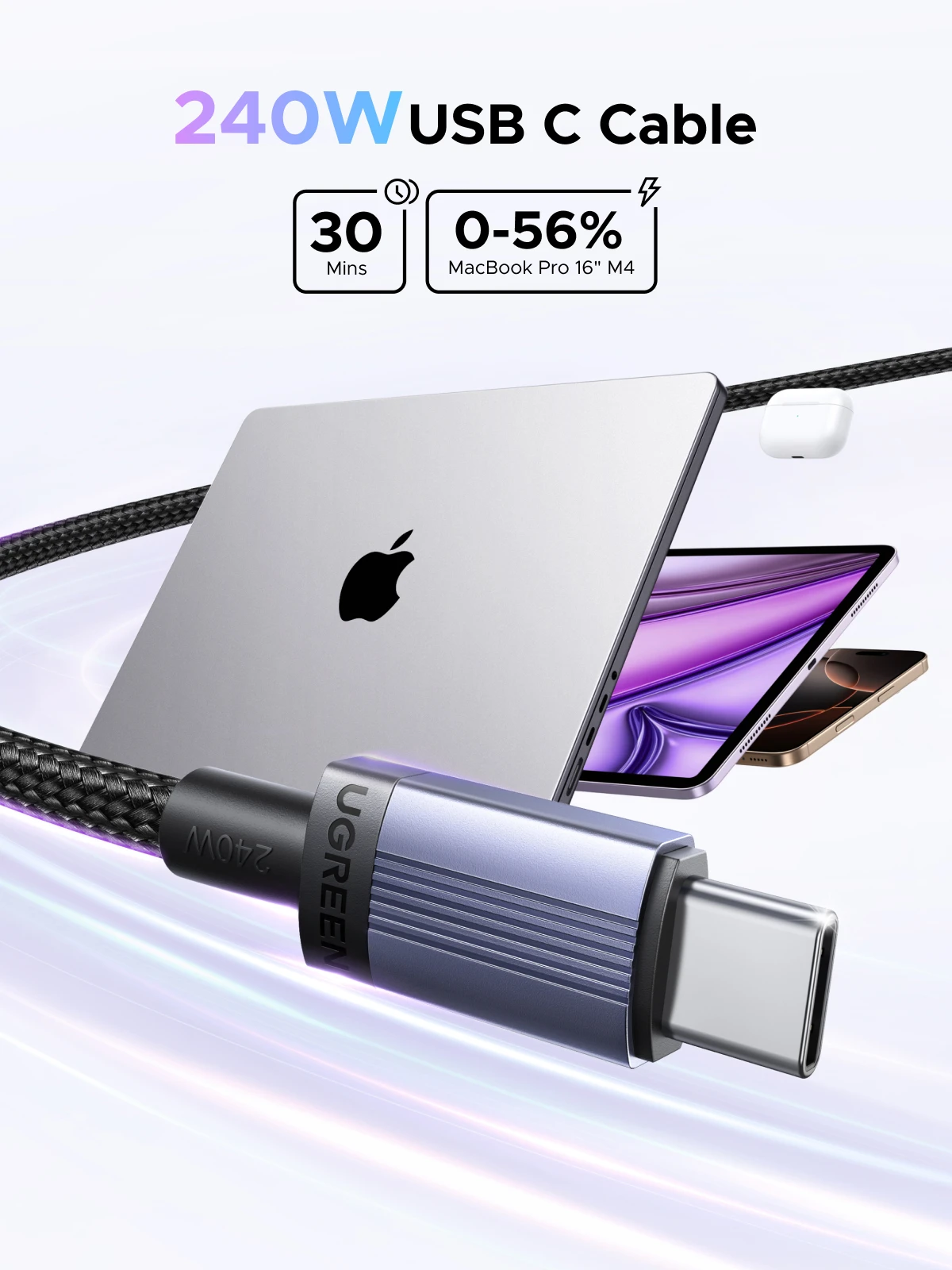 UGREEN 240W USB Type C To USB C Cable 100W PD 3.1 Fast Charging Charger Wire For Macbook Pro Xiaomi Samsung Laptop