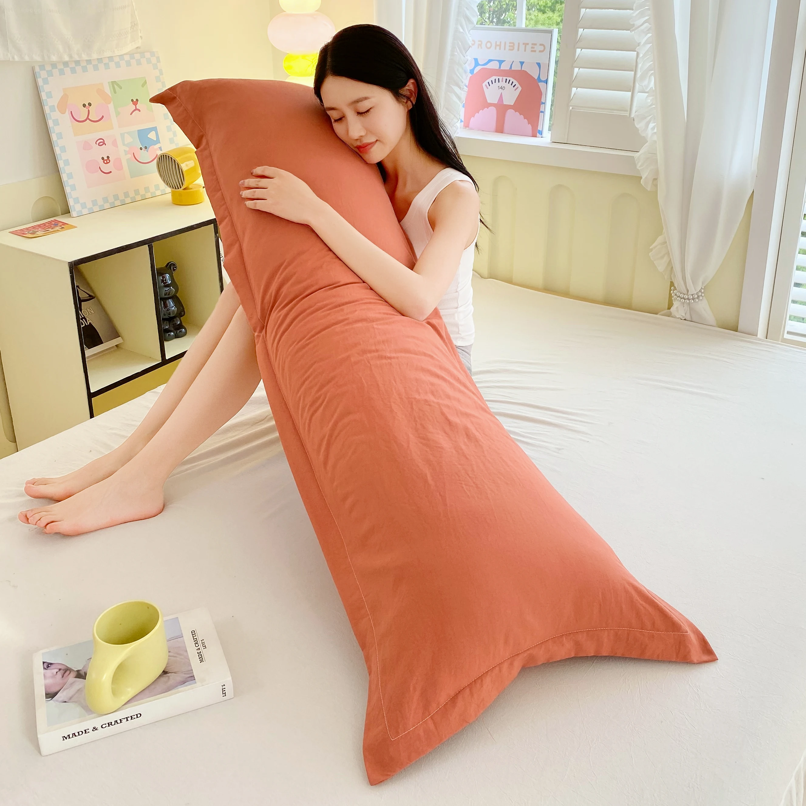 New solid-color washed double long pillowcases, couple pillowcases 48*100cm, 120cm, 150cm, 180cm (without core)