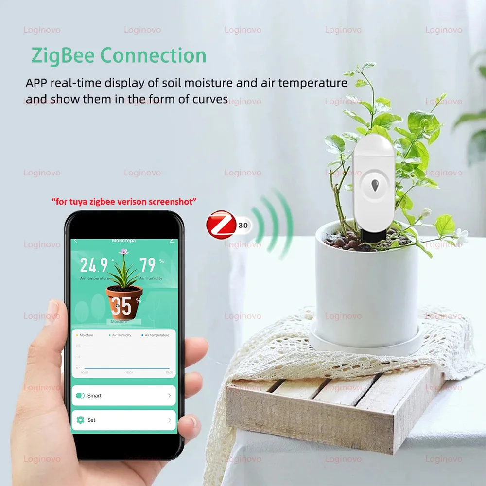 Zigbee Soil Moisture Temperature Humidity Tester Meter Sensor For Z2M Tuya Smart Life Optional Garden Automation Irrigation