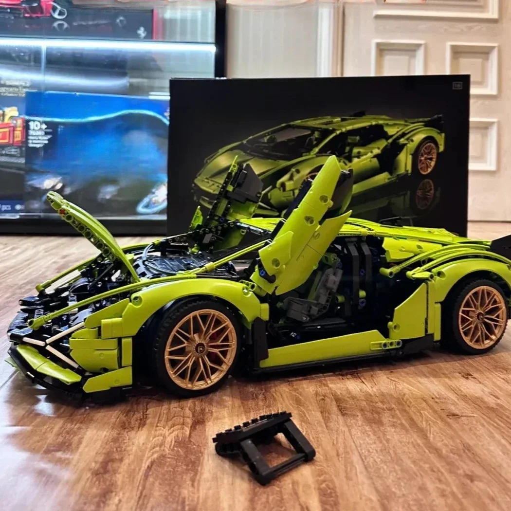 Green Sports Car MOC Building Blocks Kit 1:8 Scale Sports Car Model Toys No Power Pack Boy Birthday Gift for s 3696pcs