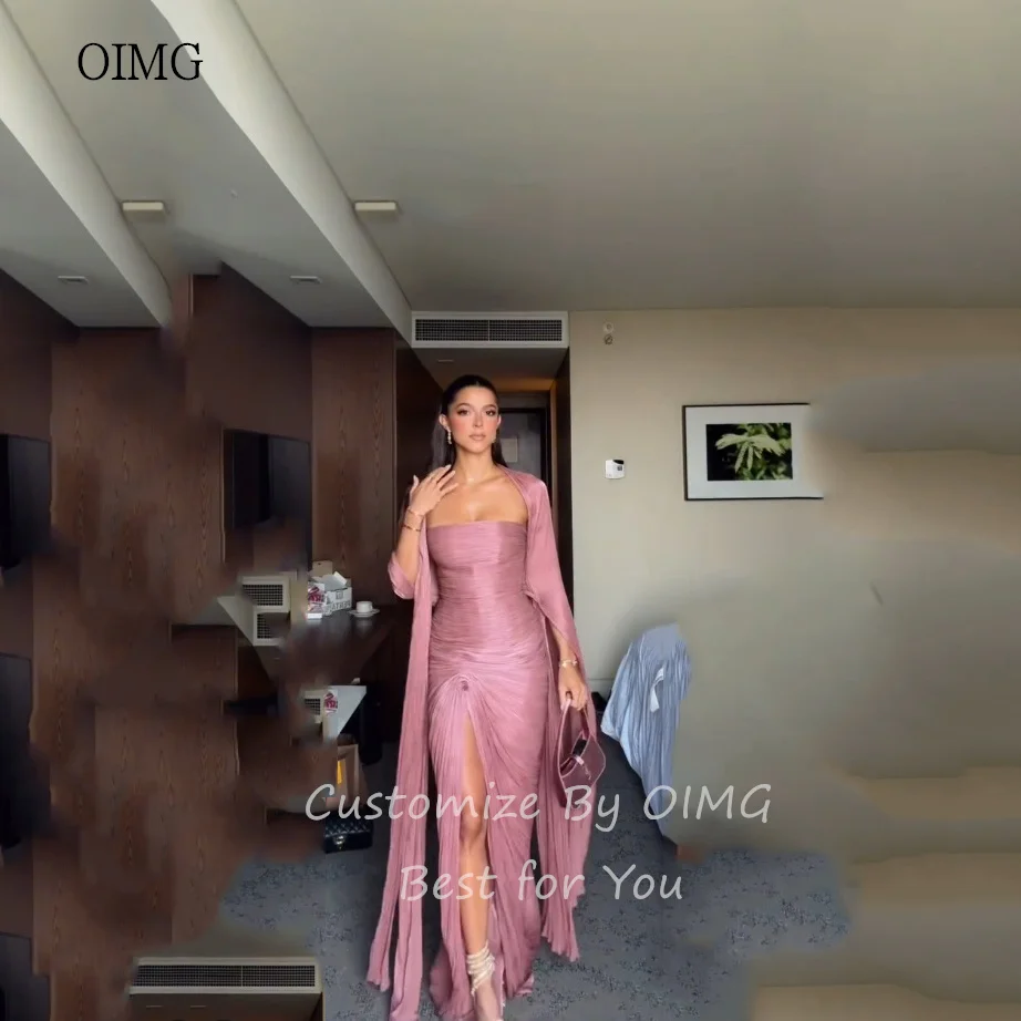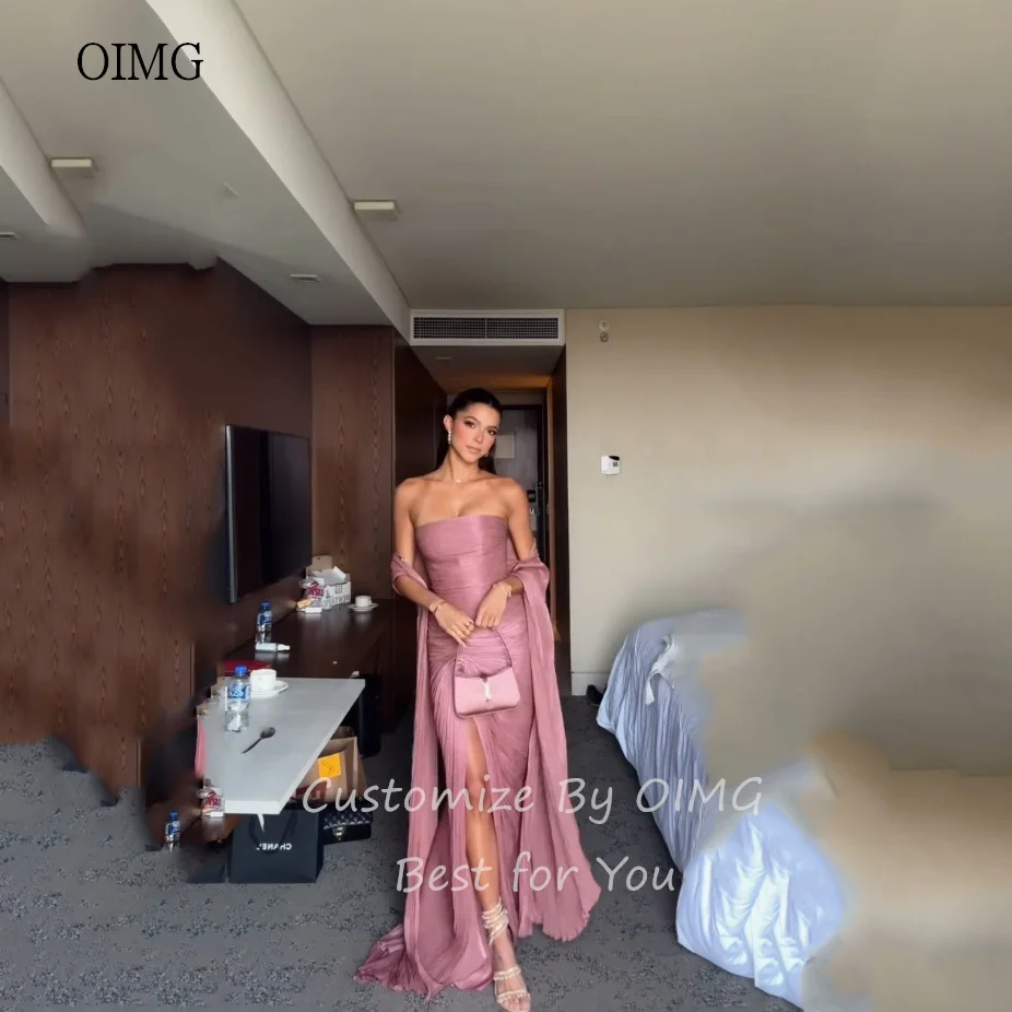 OIMG Glamorous Strapless Mermaid Prom Gowns Cap Sleeves Formal Party Gown Side Slit Floor Length Evening Dress Customized